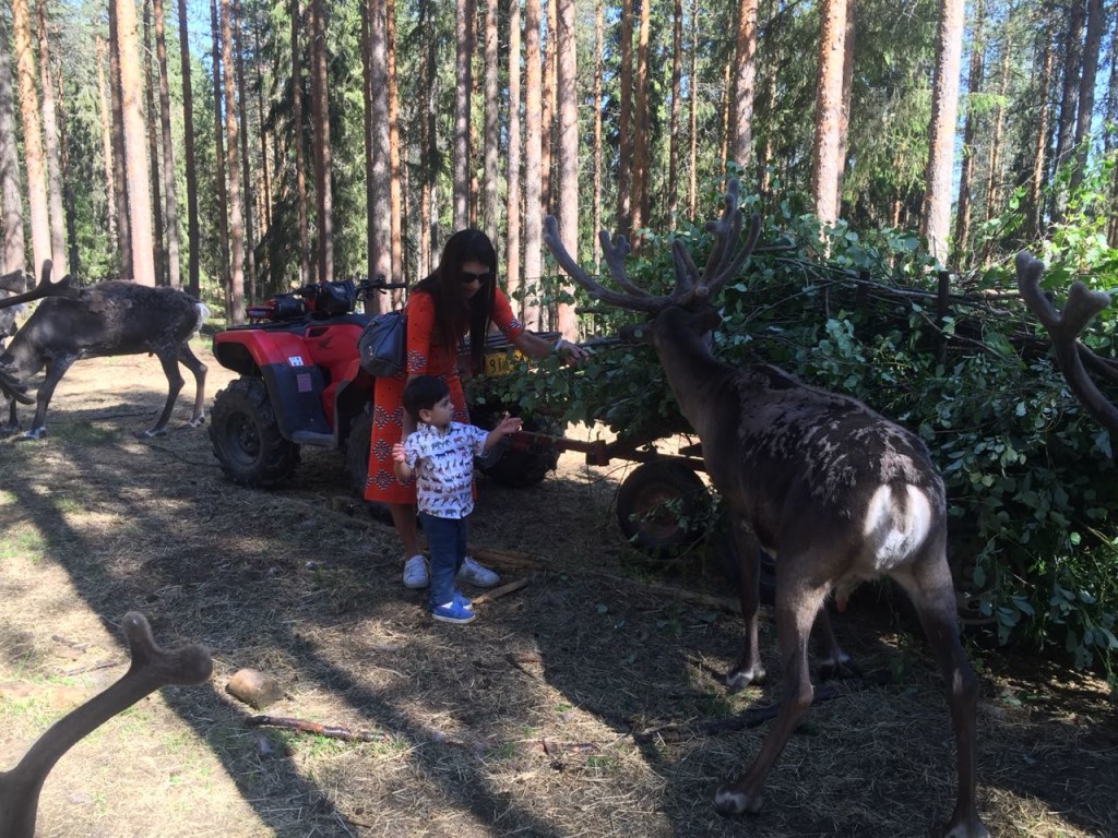 Depois, foi a vez de pegar um voo para Rovaniemi, na Lapônia, onde também dá para ir de trem. O lugar é mágico e fica concorrido na alta temporada (inverno), quando a cidade embarca no enredo natalino: tem posto de correio para mandar carta para o Papai Noel, a casa do bom velhinho para tirar foto, parque infantil, fazenda de renas, e dá até para alimentá-las (essa última atividade acontece apenas durante o verão!).
