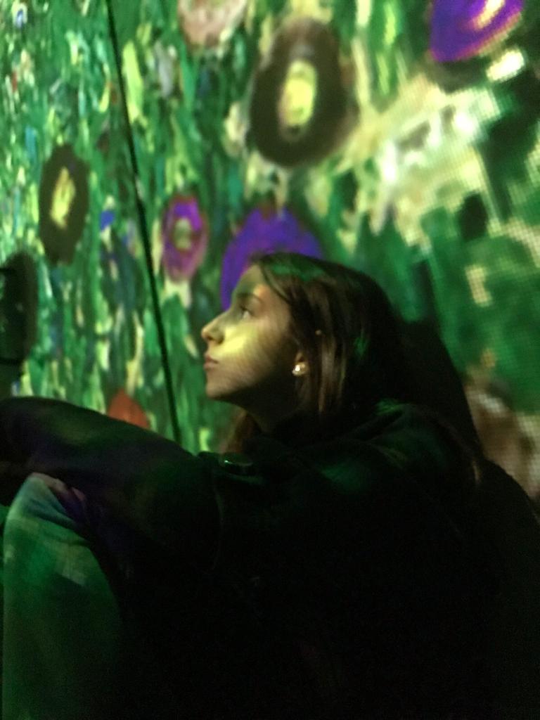 Visitamos o destino com o intuito de conhecer o “Atelier des Lumières”, uma exposição de arte imersiva, que é um tipo de modalidade em que você “vira” parte das obras do artista. Quando fomos ao local, a mostra em cartaz era a de Gustav Klimt. Ao chegar, você entra em uma sala, senta-se num canto e observa – é como se camuflar nas obras que são refletidas em você.