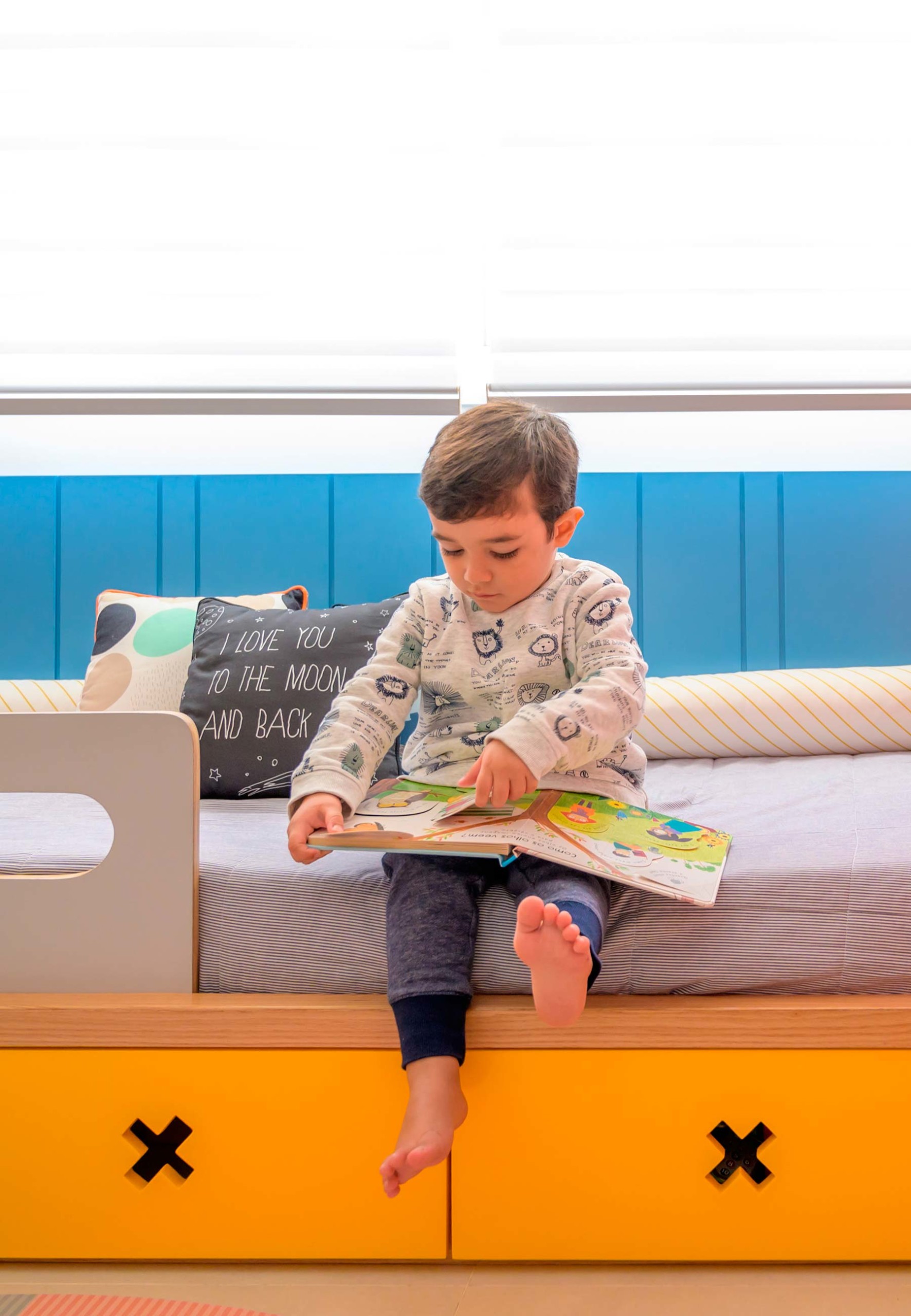 “O briefing ressaltou que o Vicente tem o maior xodó pelos seus livrinhos, por isso optamos por deixá-los acessíveis, pertinho da cama, para que ele possa fazer a leitura antes de dormir”, finaliza Tatiana.