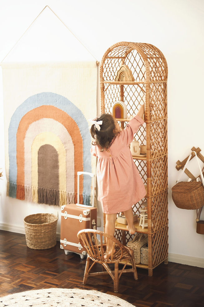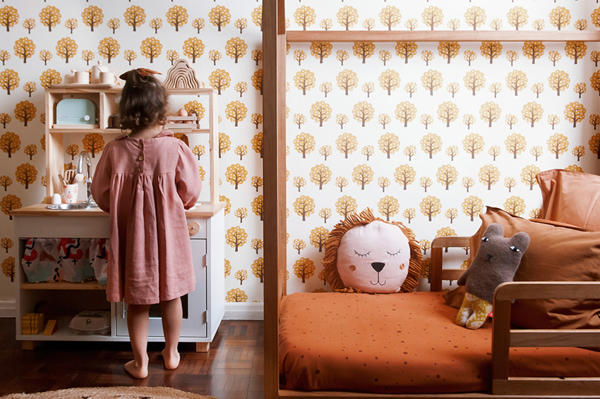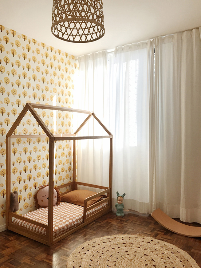 Mãe de Joaquim, de 7 anos, e de Rita, de 4, a fotógrafa Vanessa Zanforlin retrata em imagens e palavras o quarto da caçula, que teve os brinquedos de madeira como ponto de partida da decoração. “Os brinquedos naturalmente decoram também, é onde tudo começa. Madeira, fibra natural e natureza. Neste contexto, o móvel, o chão, o tapete ou o que quer que seja utilizado de suporte para esses brinquedos acaba sendo de um material natural também”, conta Vanessa.