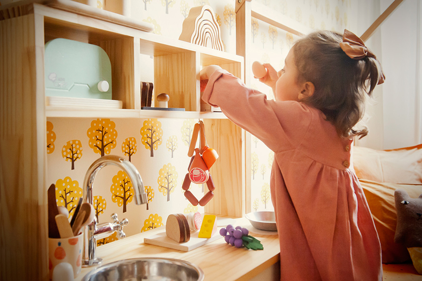 É no fogãozinho que a pequena mistura o que pega no bosque perto de casa com os alimentos de feltro e madeira. “Temos sempre comidas deliciosas preparadas por ela, pelo irmão, por nós”, avisa a anfitriã.