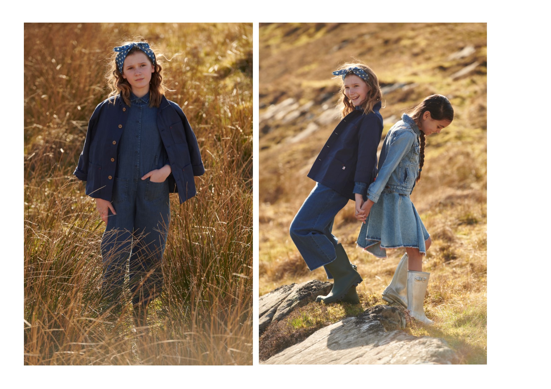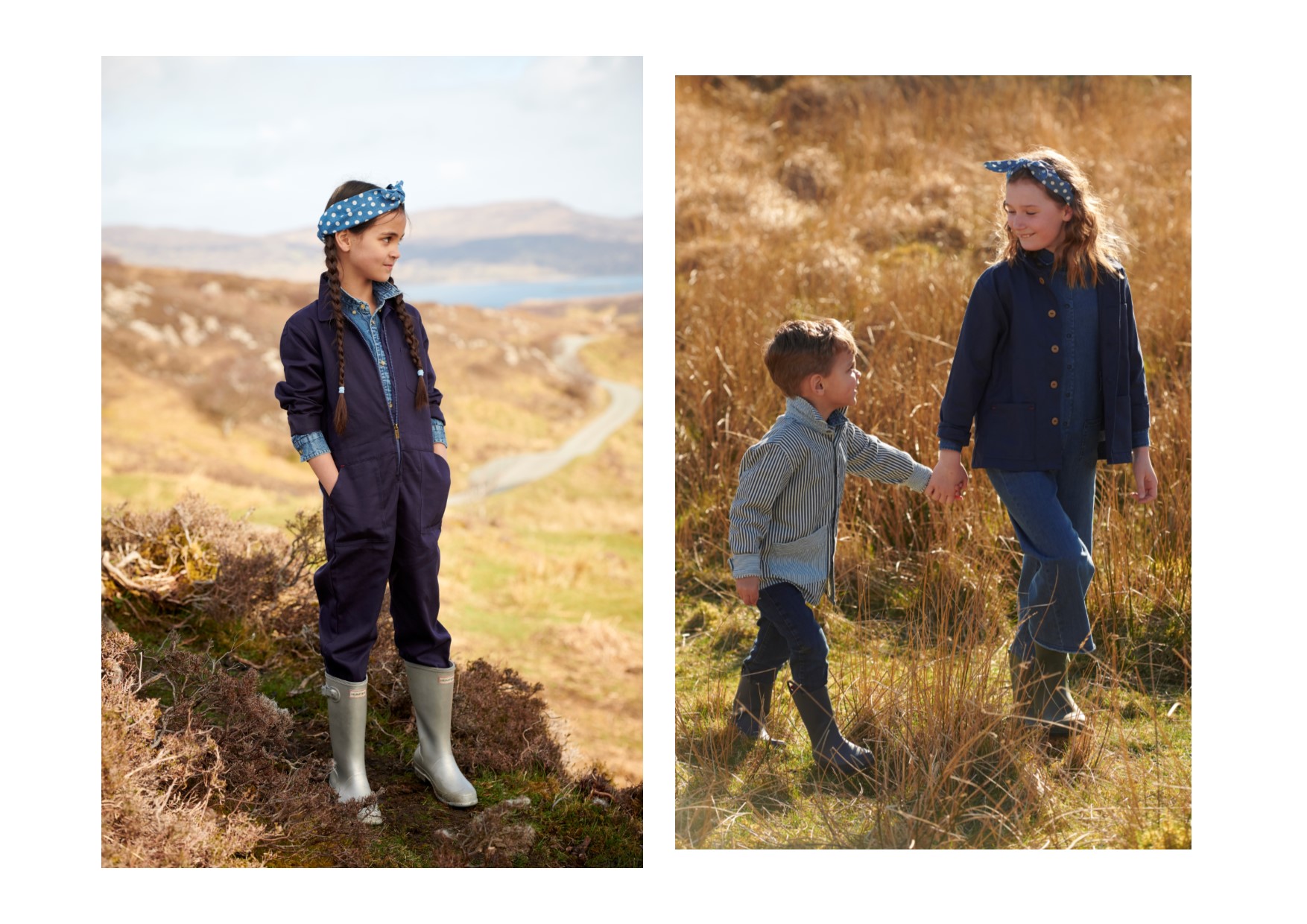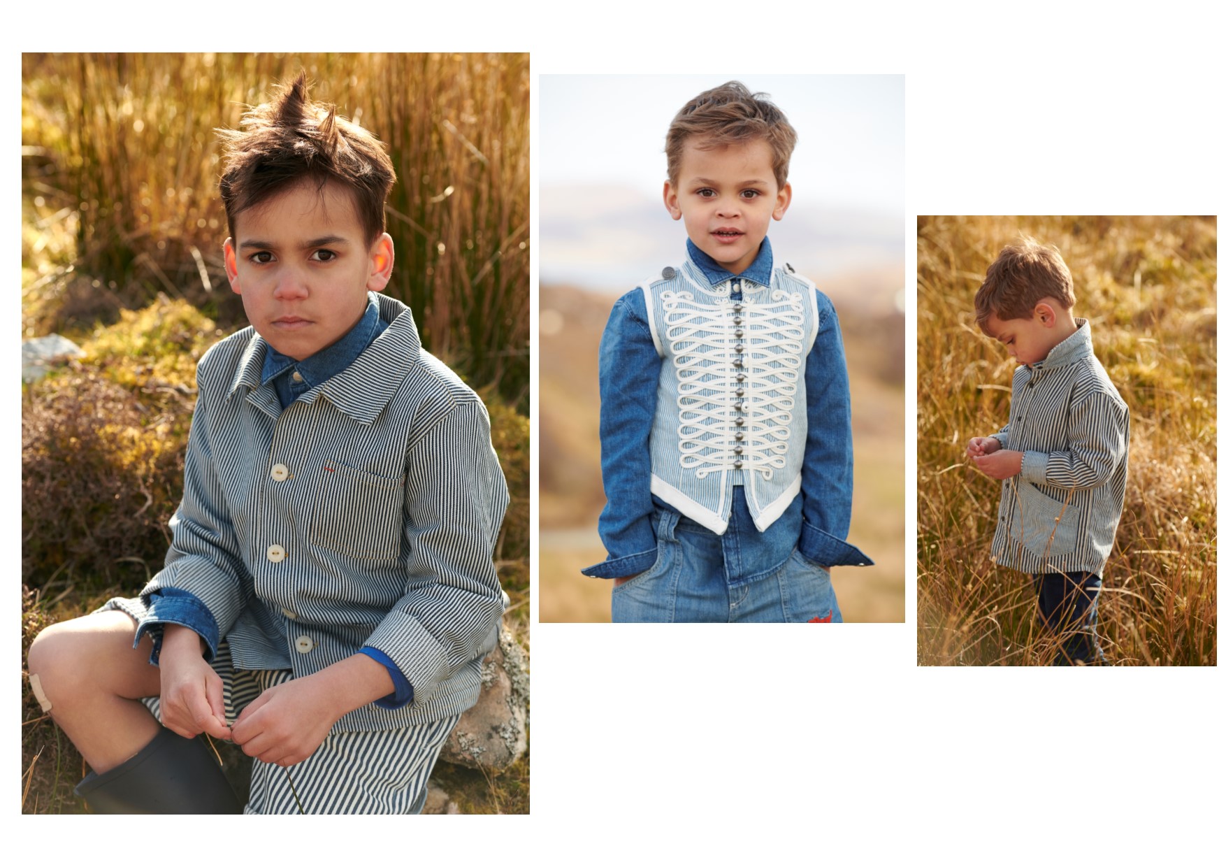 A Bazaar Kids dá um looping pelo mundo e aterrissa numa agradável fazenda da Escócia para mostrar que o estilo campestre segue no topo das preferências. Já faz algumas temporadas que a gente pisca o alerta para os macacões, que agora aparecem com textura fabril, mais resistentes e encorpados. A lavagem do jeans sobe alguns tons, mas não abandona o azul estonado. Os listrados ganham a companhia das jaquetas de cor marinho, além de estampas com folhagens e poás. Bandanas e galochas finalizam os looks.