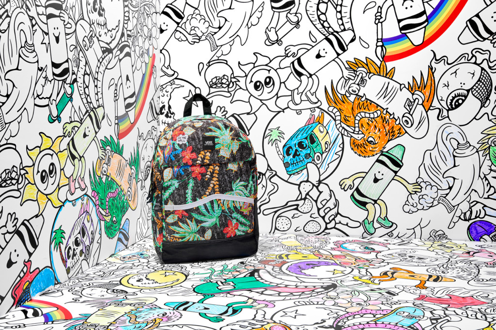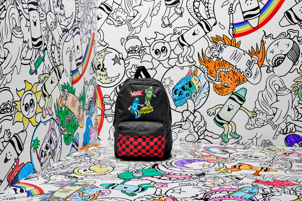 A minimochila Vans x Crayola foi construída com alças superiores, bolsos frontais com zíper e um inovador bolso de giz de cera para que os momentos de criação aconteçam em qualquer lugar. Completam o moodboard, camisetas e moletons de algodão desenvolvidos com ilustrações feitas à mão, em combinação com a t-shirt de manga longa Vans x Crayola Crayon, que traz a inconfundível estampa Checkerboard da Vans rabiscada na manga. A mochila com desenhos, o boné Jockey de cinco painéis e as meias Vans x Crayola arrematam a linha para o dia a dia. vans.com.br/crayola