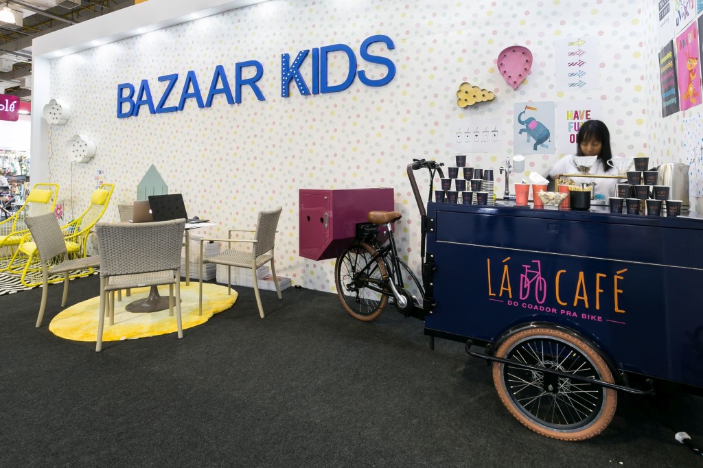 A primeira participação da Bazaar Kids em uma feira de grande porte tinha mesmo que ser do tipo “arrasa quarteirão”. E foi com vontade de destrinchar esse termo, que contamos com a parceria de gente bamba, como Camila Avesani, dona da Avesani Comunicação, que trouxe para o circuito a dupla afinada da RCB Arquitetura. Camila Buciani e Renata Castilho idealizaram um espaço lúdico, interativo e inclusivo, com tapetes da grife Lorena Canals, mobiliário da Tidelli e do Studio Massa, papel de parede exclusivo desenhado por Eliana Sposito e letreiro da Revê Interiores. Os pôsteres da Ideia da Lu e da Mooui deixaram o ambiente ainda mais convidativo, assim como as luminárias da Ameise Design e da Tangerina Décor. O arremate final ficou por conta da portinha cenográfica da Festejo in Box e dos origamis da Contagie-me. Para conquistar o público, a La do Café estacionou a bike por ali e serviu o café mais saboroso de todo o Pavilhão Vermelho.