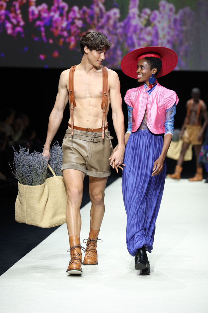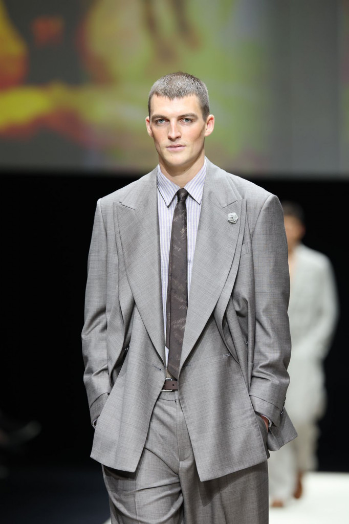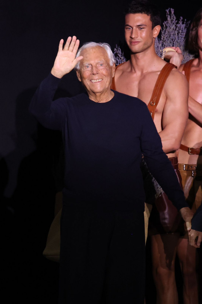 A Emporio Armani desfilou sua coleção verão 2025, encerrando seu show com vários modelos carregando bolsas com lavandas, acompanhados por mulheres vestindo vestidos florais. A atmosfera remetia à icônica estética Armani, que celebrará em breve 90 anos. Giorgio Armani apareceu sorridente ao final do desfile, indicando que esta pode ser sua última coleção para a marca.