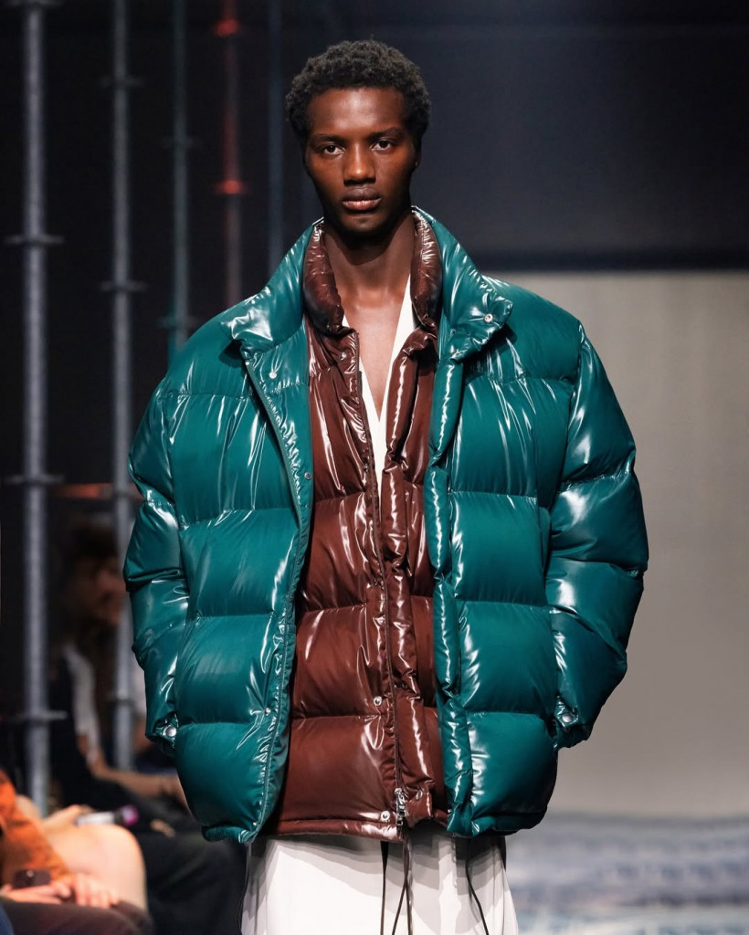 No styling, as combinações são inesperadas e, ao mesmo tempo, extremamente comerciais, contrariando mais uma vez o algoritmo padrão: peles artificiais jogadas casualmente sobre casacos, calças de cetim combinadas com roupões, e casacos de pele de carneiro de pelo longo usados do avesso.