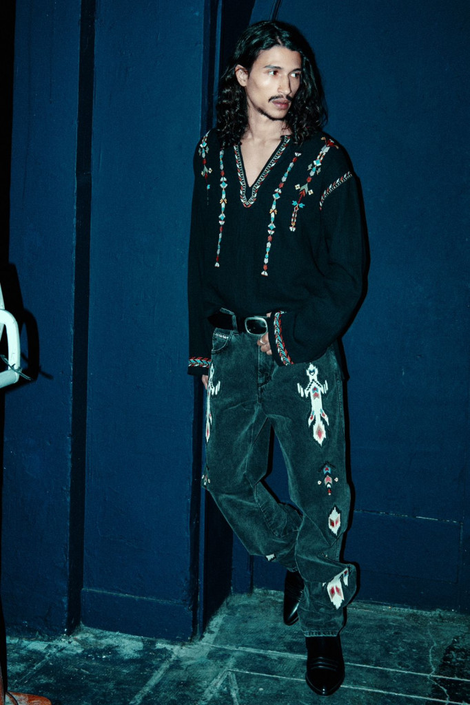 Isabel Marant Homme, durante a semana de moda masculina em Paris, apresentou sua nova coleção, trazendo para a cena um homem sexy, que usa produções com atitude e personalidade, mesclando camisas abertas e calças de couro. A marca também ousou na inspiração “rock”, mas mergulhada em uma pegada romântica, apostando em estampas no estilo paisley, misturando jacquards gráficos, jeans customizados, xadrez em diversas cores, lenços e malhas pintadas.
