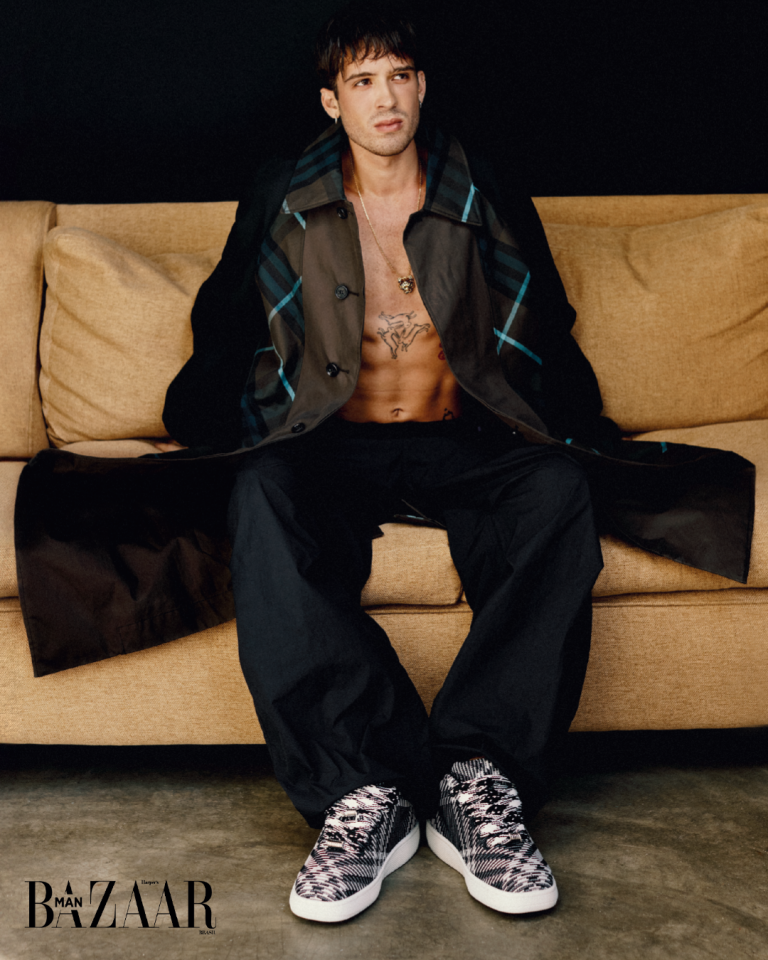 Trench, calça e sapato Burberry, cueca Zara e colar Cartier – Foto: Ivan Erick, com direção criativa de Alexandre Montanher, styling de Thiago Biagi (Capa MGT), beleza por Helder Rodrigues, vídeo por Gabb Neves e Bruna Lucena, coordenação Mariana Simon, produção executiva Lovi Produções e Zuca Hub, produtores responsáveis Diego Fragoso e Claudia Nunes, produção de moda e assistência de styling Guilhermo Lima e Malu Lucatelli, retouch de Philipe Mortosa, camareira Amanda Câmara, assistentes de foto Thiago Lima e Luan Zanini, assistente de beleza Adriel Lucas e locação Tino Estúdio