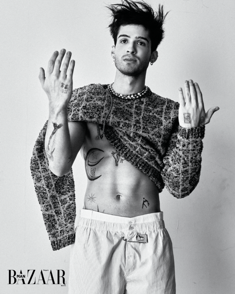 Tricot, cueca e colar de pérolas Dior, colar dourado Gammba, colar usado como amarras Shui, colar elos Pandora e alfinete Gammba – Foto: Ivan Erick, com direção criativa de Alexandre Montanher, styling de Thiago Biagi (Capa MGT), beleza por Helder Rodrigues, vídeo por Gabb Neves e Bruna Lucena, coordenação Mariana Simon, produção executiva Lovi Produções e Zuca Hub, produtores responsáveis Diego Fragoso e Claudia Nunes, produção de moda e assistência de styling Guilhermo Lima e Malu Lucatelli, retouch de Philipe Mortosa, camareira Amanda Câmara, assistentes de foto Thiago Lima e Luan Zanini, assistente de beleza Adriel Lucas e locação Tino Estúdio