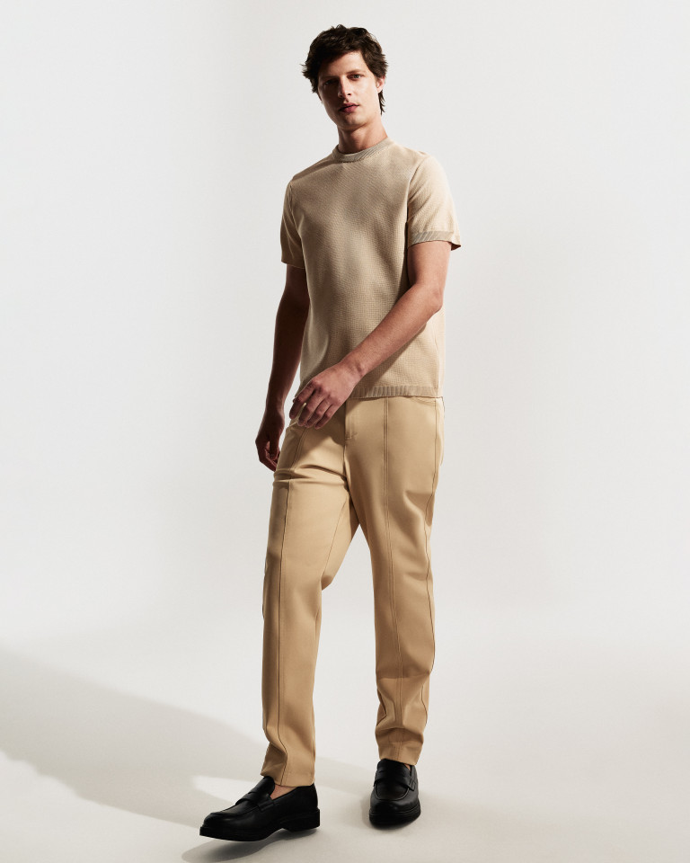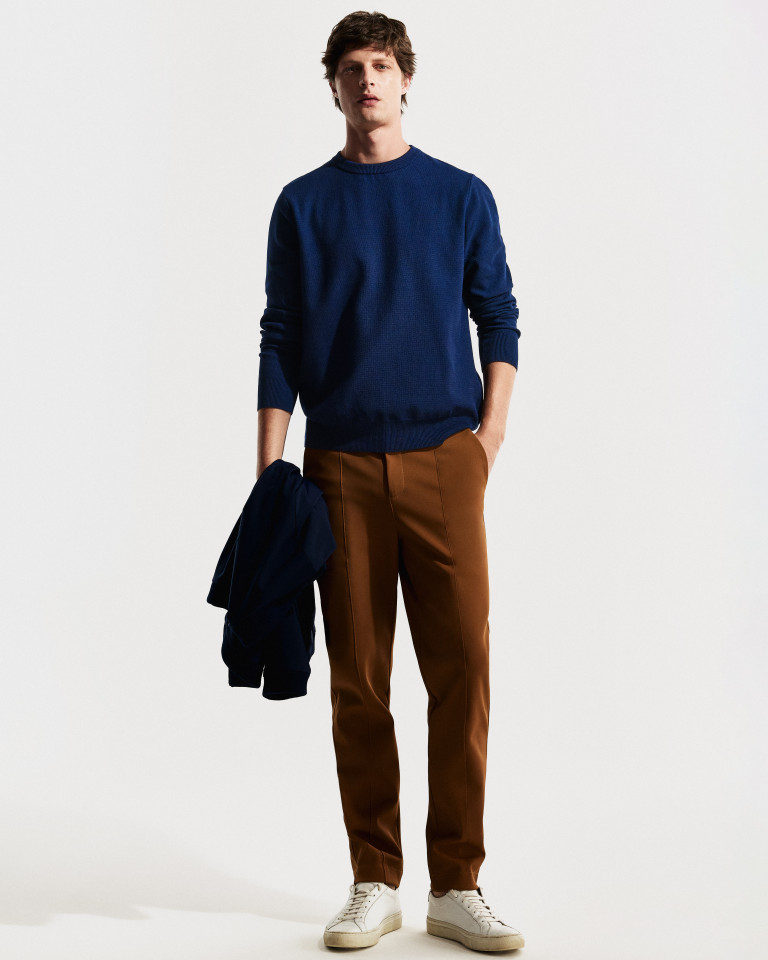 Tricots e peças de malharia completam o repertório com leveza, reforçando o visual moderno que guia a linha. A paleta mantém o DNA atemporal da marca, com tons como preto, marinho, verde, bege e caramelo.