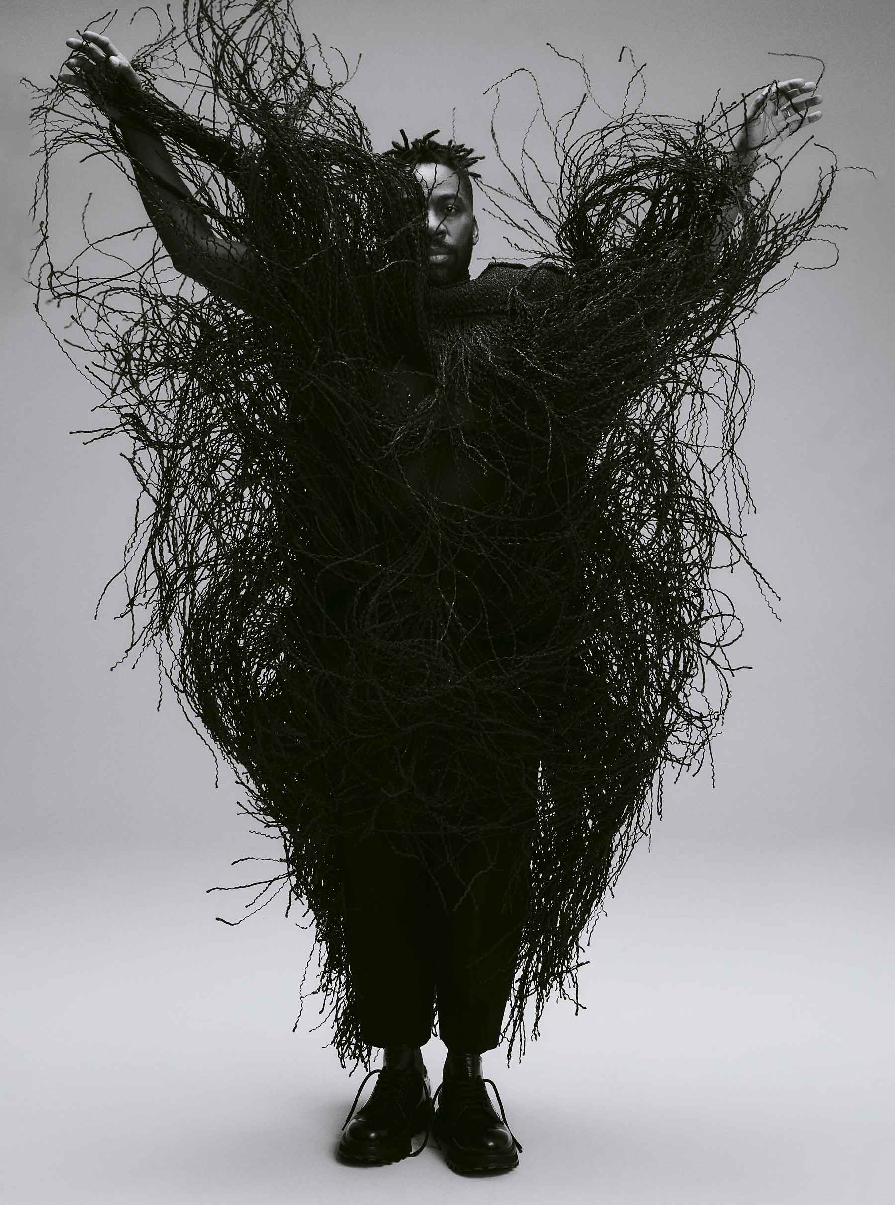 A conversa consigo é essa. Não tem nada resolvido, mas ligou o alerta. “Tem a ver com a idade, né? Não tem jeito”. Sob sua ótica, masculinidade tóxica é desconstrução constante – revisitada todos os dias. E assim surge na capa e recheio desta Bazaar Man. “Na minha vida e profissão, é um propósito e maneira de viver. Resgate, lugar que não visitava há muito tempo. Vem em boa hora”. Aproveitou o ensaio para ressignificar a imagem “desse cara preto” e ficou feliz com o resultado. “Um dia pleno”, sorri.
