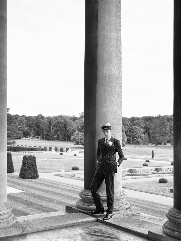 Acontece que a verdadeira fantasia, essa que o espírito humano perdeu a capacidade de alcançar, já ficou bem para trás. Às vezes, aparece por alguns minutos antes de sumir de novo, como foi com a nova apresentação masculina da Celine, orquestrada por Hedi Slimane. Anunciada por um trompete ao ritmo de Les Indes Galantes, de Rameau, a coleção desfilou nos jardins de Holkham Hall, lar centenário dos condes de Leicester. Mais do que moda, foi um retrato social digno das lentes de Cecil Beaton – tanto, aliás, que foi essa sua grande inspiração: ‘The Bright Young Things’, o grupo nervoso de jovens privilegiados, perdidos e infelizes que, por um momento breve na vida, ensinaram uma forma de beleza para a História.