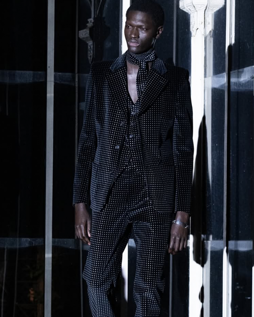 Com um guarda-roupa contemporâneo e marcante, a coleção se destacou pela ousadia nos materiais e nas texturas, apresentando clássicos masculinos reinventados. A proposta equilibrou funcionalidade e extravagância, consolidando a identidade do homem MM6 por meio de detalhes únicos que dialogam com o estilo urbano e sofisticado.