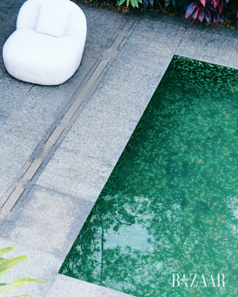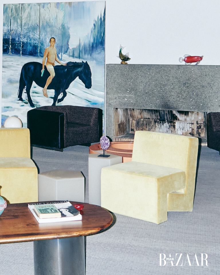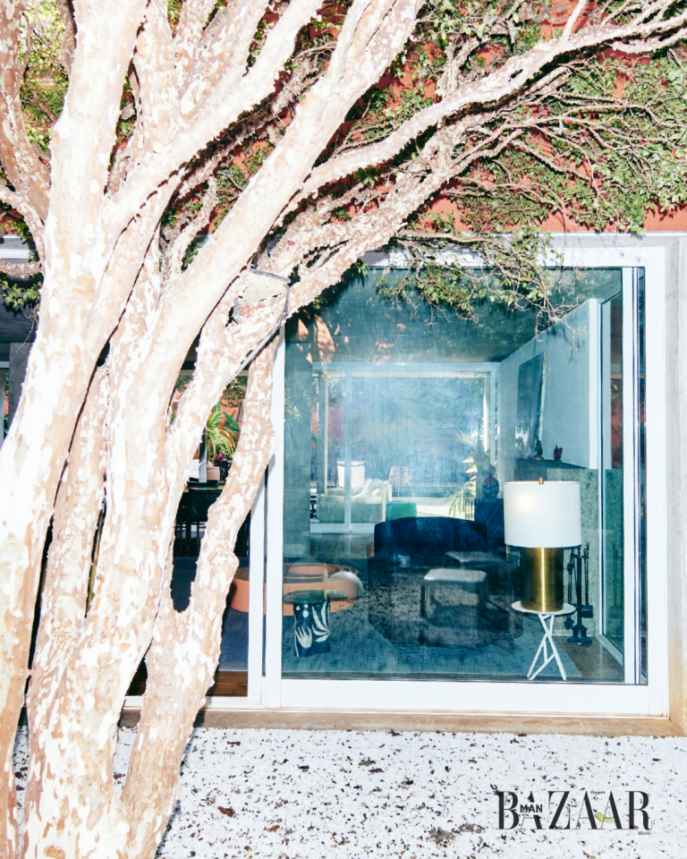 “Minhas fotos têm esse erotismo evidente, um certo incômodo nas proporções… Mas aqui, na minha casa, existe um aconchego, sabe? Um drama também — o sol, pela manhã, revela uma coisa, já a noite mostra outra história”, narra à BAZAAR Man. Localizada no Alto de Pinheiros, bairro que ele descreve como “cheio de drama em cada esquina”, a casa é um exemplar raro da década de 1990, conservada com o charme da sua época original.