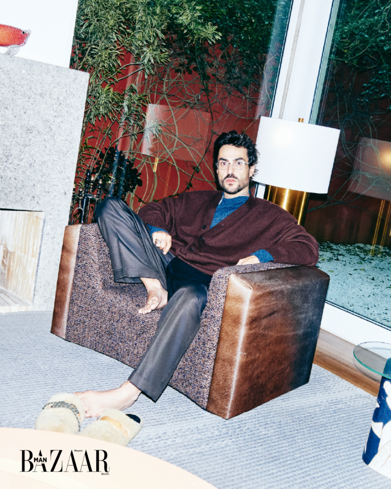 Solteiro e dono de uma casa grande, ele vive sozinho — e ama isso. O que não significa que vive isolado. “Talvez o que eu mais goste seja receber. Pode ser pra vermos besteira sentados no sofá ou pra um super jantar. Amo ter os meus por perto.” Se tivesse que montar uma mesa com nomes das artes e da moda, ele hesita em cravar convidados. “Qualquer pessoa com a alma livre é bem-vinda. Gosto de explorar pessoas, de conhecê-las profundamente.”