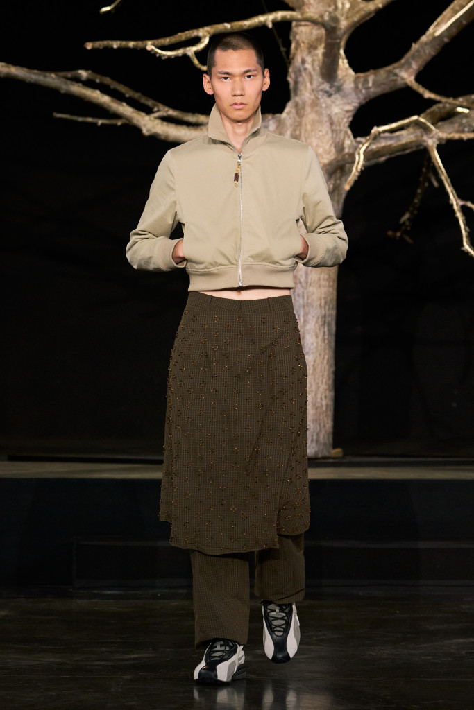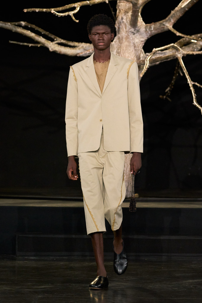 No cenário, uma árvore e a iluminação reforçam esse pensamento sobre os ciclos — a luz acendia e apagava constantemente, ora de forma lenta, ora mais frenética, como os próprios ciclos da natureza e da cultura. Uma estreia que fez o Brasil brilhar na semana mais importante da moda masculina no mundo. Resultado de talento, pesquisa e uma co-criação potente e inspiradora.