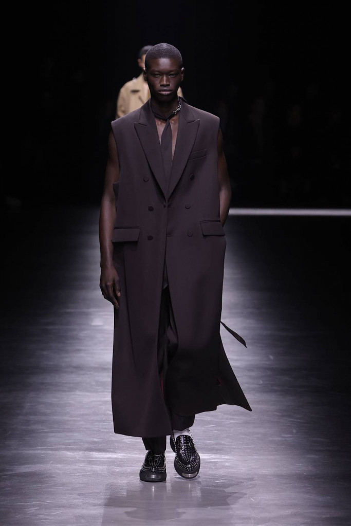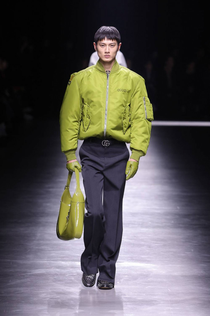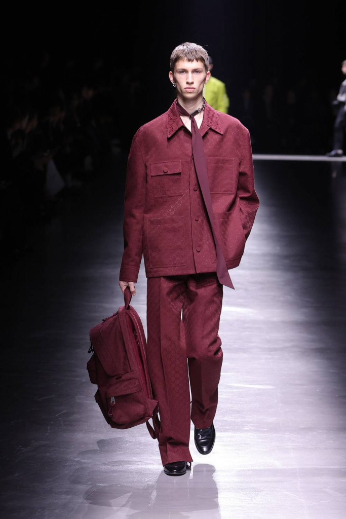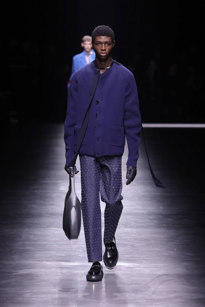 Agora, com Sabato de Sarno, a grandiosidade foi substituída pela intimidade e, desde sua estreia na marca, em setembro, o sentimento de intimidade e minimalismo soa como a palavra da vez. Em sua estreia na semana de moda masculina, suas paixões sussurradas estavam todas lá. O vermelho Ancora, que debutou na última temporada, segue firme e forte, ao lado do verde chartreuse que vestiu até Taylor Swift na última edição do Golden Globes. Para somar à paleta, um novo azul também parece ser uma novidade “quente”.