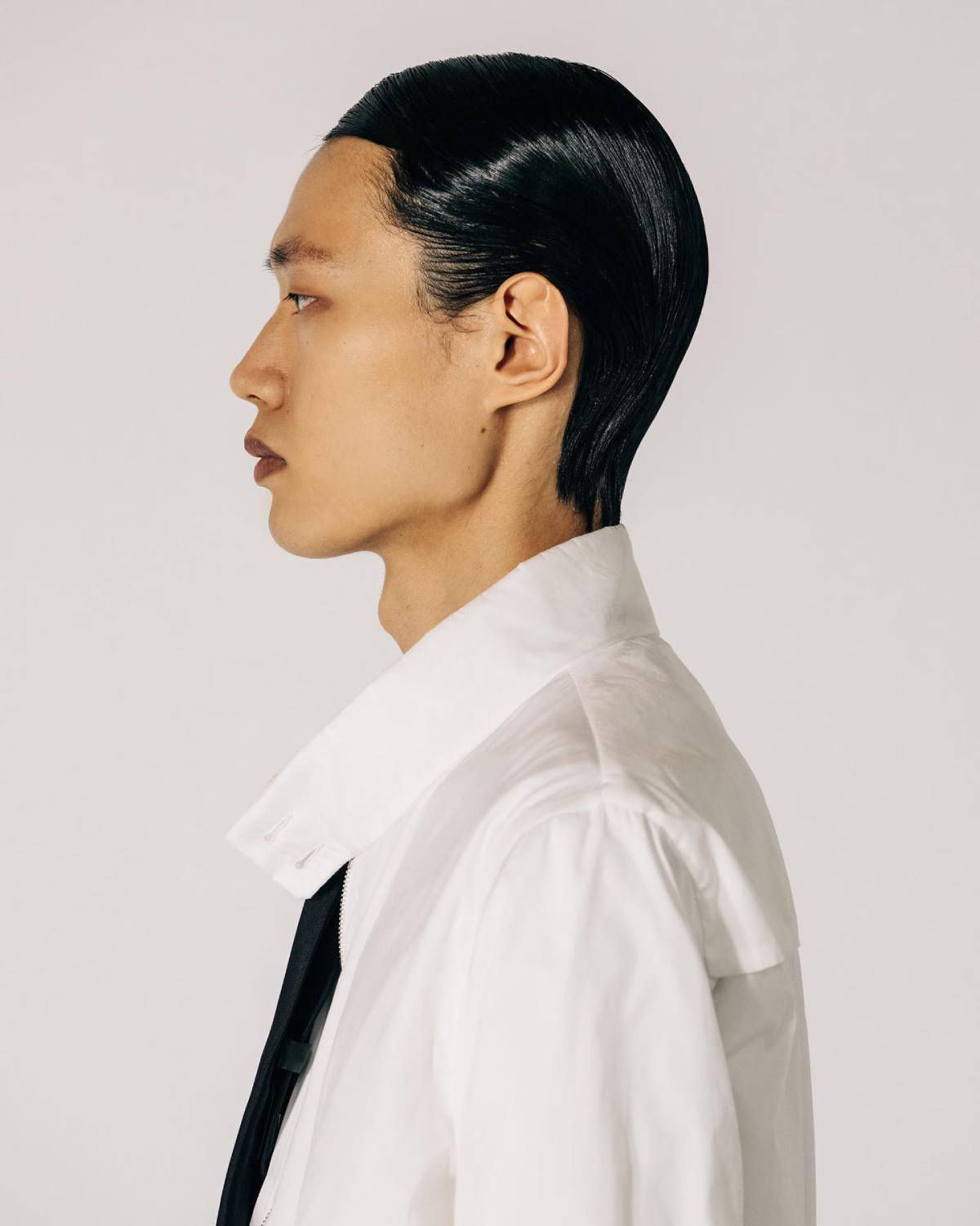 Já Dior e Ludovic de Saint Sernin adicionaram um pouco de textura à parte que fica rente ao couro cabeludo, criando linhas com os fios – a primeira marca fez o penteado com os fios puxados para trás, enquanto a segunda preferiu criar um leve movimento para a lateral. Para recriar este visual, basta usar um pente com pentes largos na hora de modelar o cabelo com o gel, deixando as frestas bem visíveis.