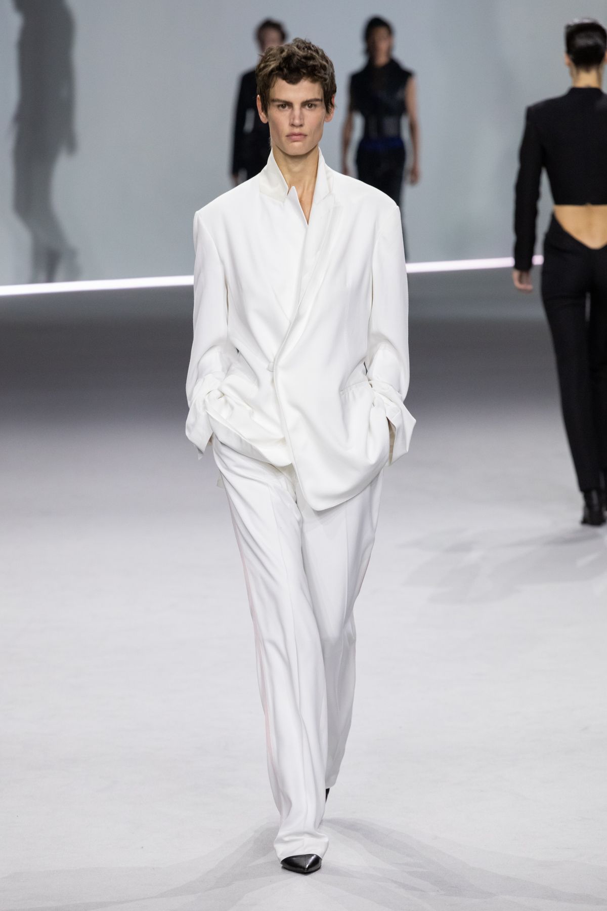 O clássico terninho foi desfilado na passarela de Haider Ackerman. O visual é sinônimo de finesse e esbanja poder.