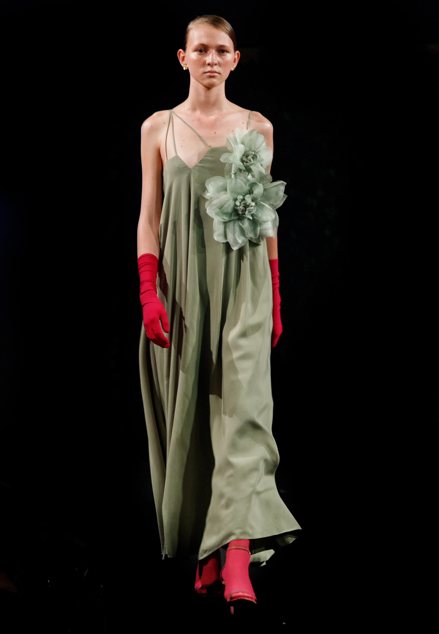 Na passarela, a cartela de cores vai do branco e off-white até tons de verde, azul petróleo, vermelho e fúcsia. Entre as matérias primas estão o georgette, organza e gazar de seda, tricoline, algodão, viscose e rendas.