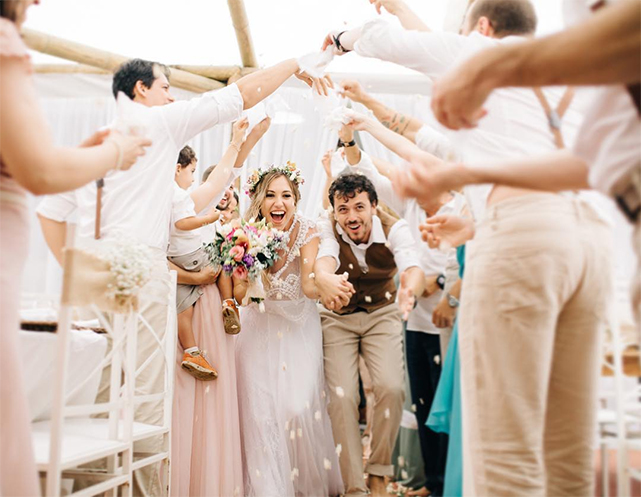Enquanto casamentos na cidade combinam muito com salto alto, cerimônias no campo e na praia podem complicar o uso do acessório – afinal, você não quer afundar na grama ou areia assim que aparecer diante dos convidados. O ideal é usar sapatos baixos ou apostar em um protetor de salto. Ah, e não desconsidere ir descalça se for dizer “sim” em frente ao mar.