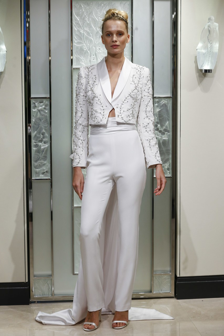 As noivas modernas que querem abrir mão do vestido e apostar em macacões ou calças para se casar vão ter muitas opções em 2020, no que depender das grifes internacionais que se apresentam na principal semana de moda especializada em casamentos do mundo, realizada em Nova York.