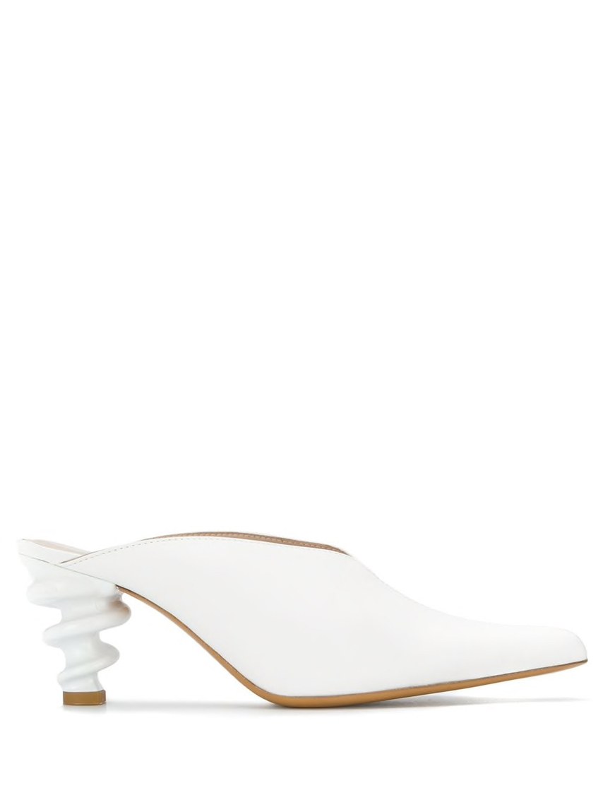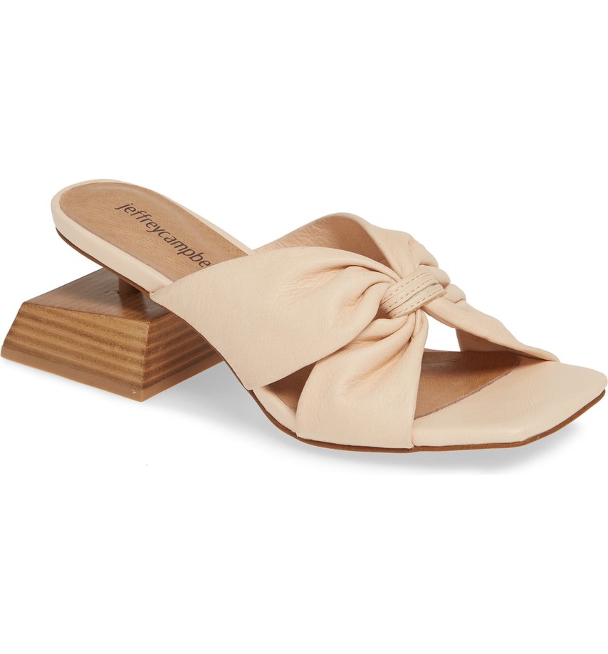 Não tenha medo de misturar os materiais: a mule trançada ganha ainda mais informação de moda com o salto redondo de madeira.