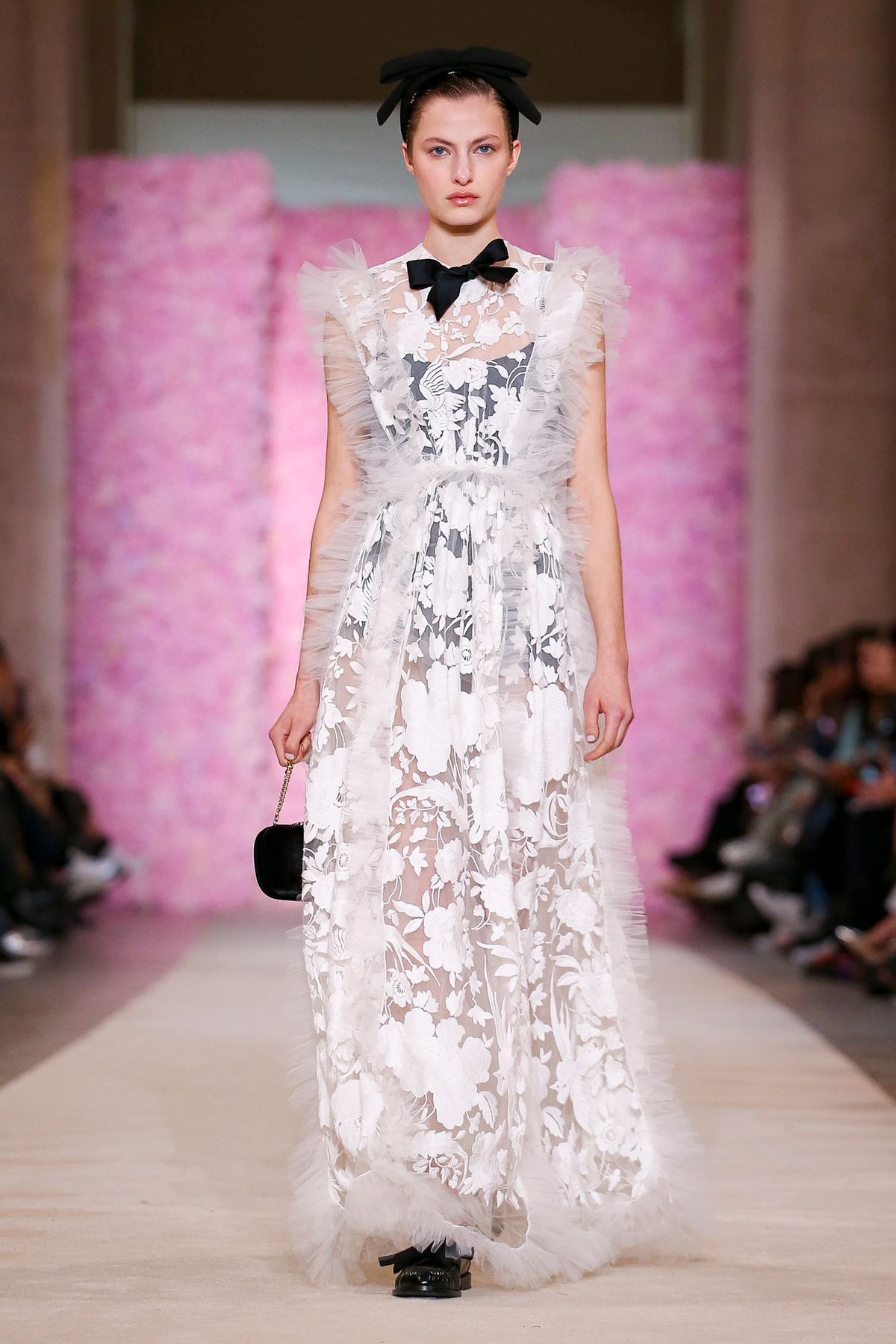 Entre os looks criados para a temporada, Giambattista Valli apresentou alguns vestidos que podem servir de inspiração para quem vai casar, tanto por terem modelagens clássicas quanto por contarem com características inesperadas, como babados de tule, transparência e comprimentos não tão longos. Veja cinco apostas para vestidos de noiva: