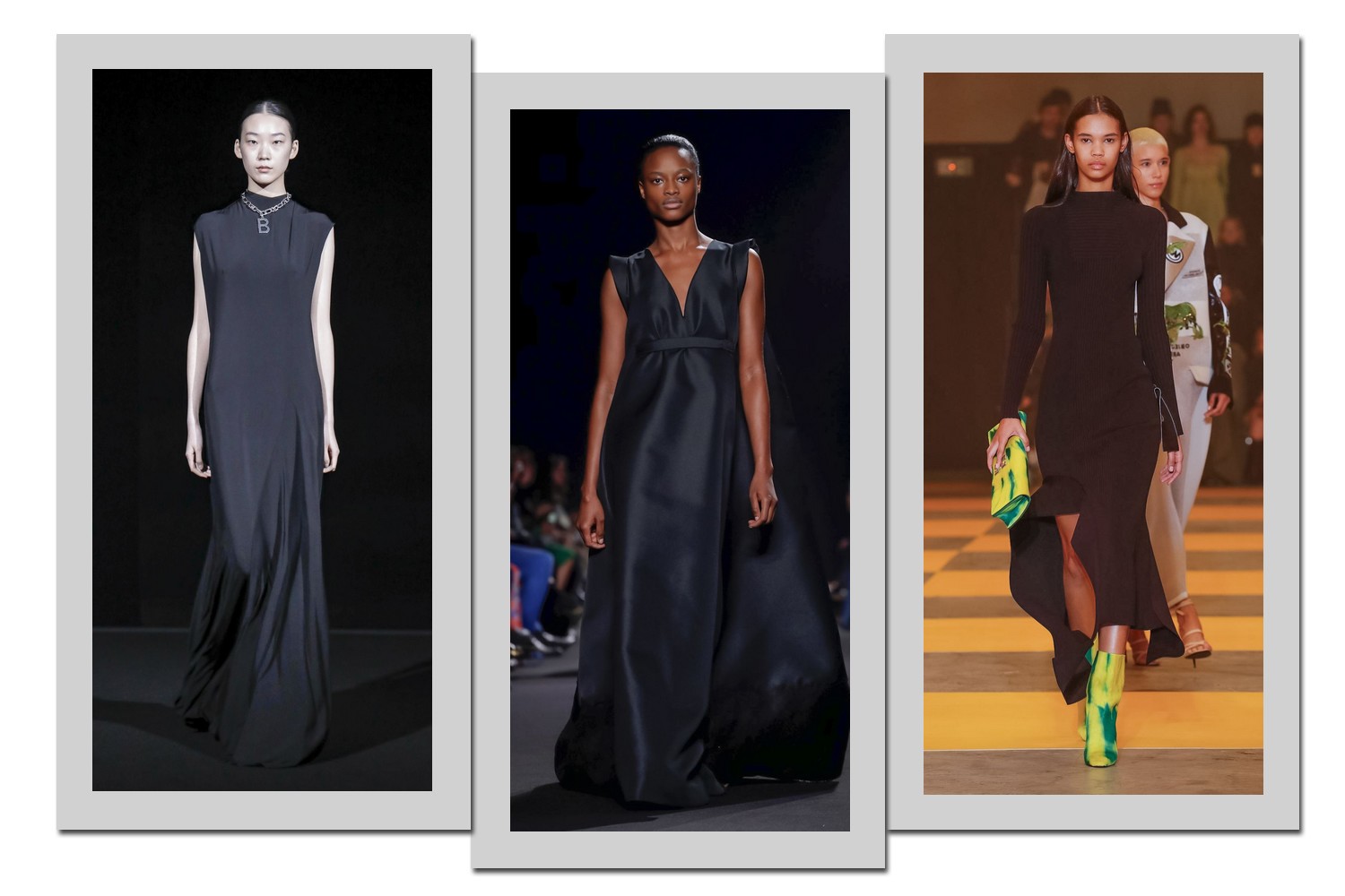 Uma ótima opção para o vestido de madrinha é ser minimalista. Não precisa ter brilho, renda ou babados para ser bonito e elegante, uma modelagem bem feita, como nas peças da Balenciaga, Rochas e Off-White, cumprem todos esses requisitos.
