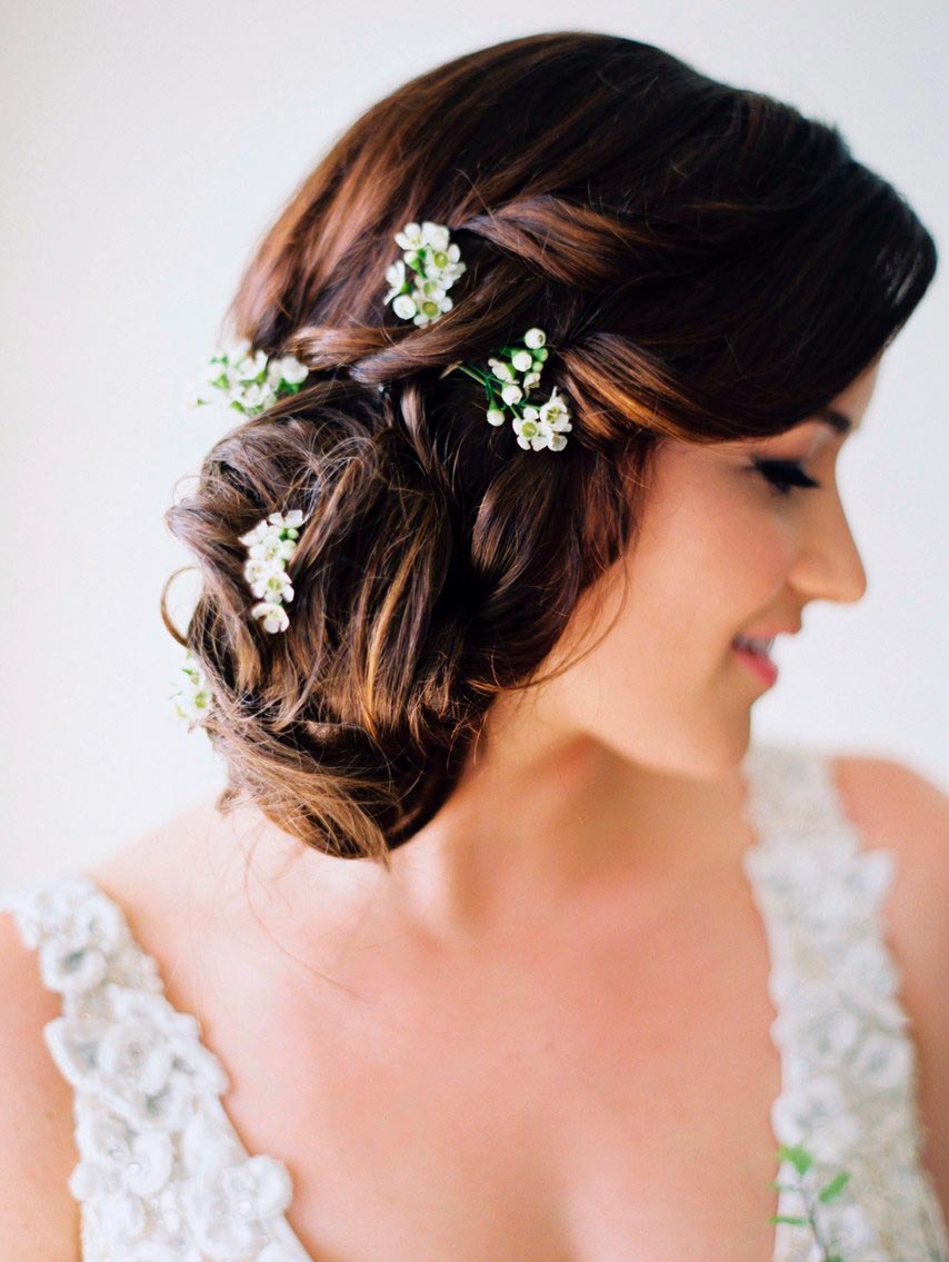O que é o casamento se não uma ocasião romântica? Flores são essenciais na decoração do espaço que recebe a cerimônia, e podem também entrar para o look da noiva e não só no buquê. Experimente usá-las também no cabelo, é aposta certa!