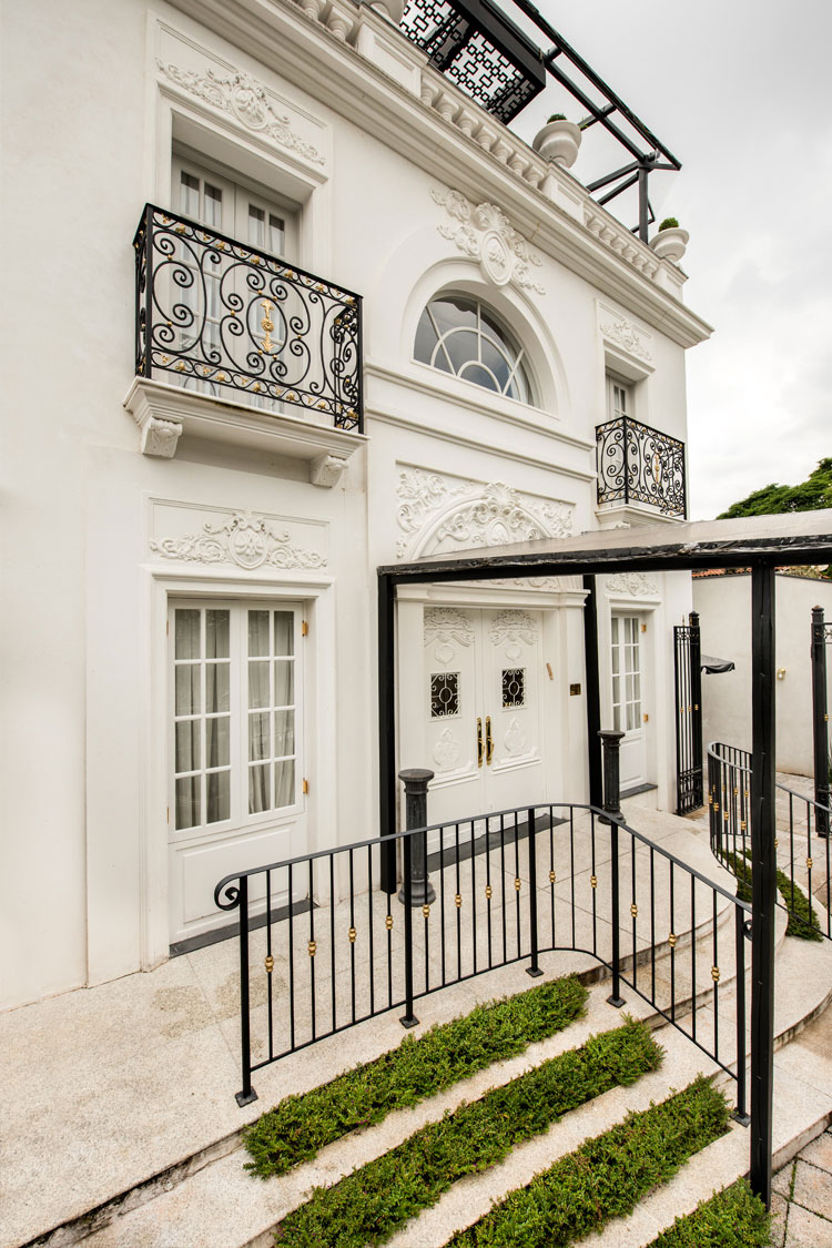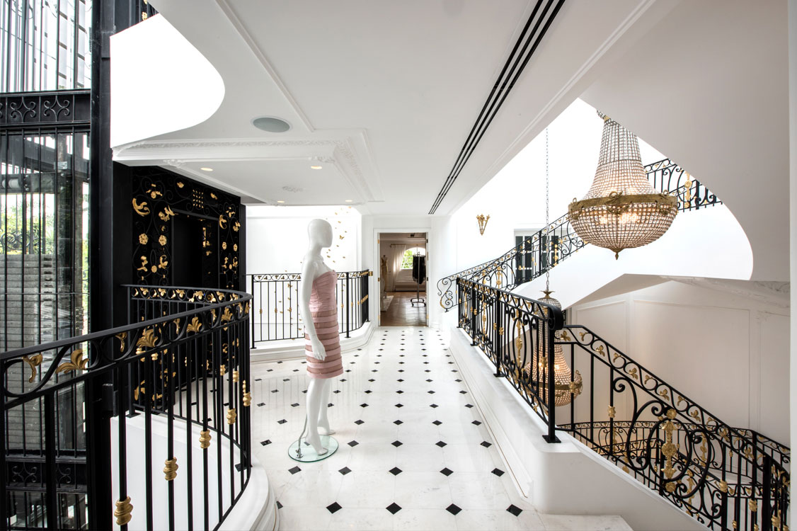 Com intuição extremamente aguçada para o mecenato das artes, Madame de Pompadour serviu de base para Alexandra Fructuoso criar a sede da Maison Alexandrine, em São Paulo. Cada recanto da casa respira o “perfume” de uma França em plena ebulição artística, cultural e arquitetônica, onde estão presentes materiais nobres como mármore, ferro, ouro e vidro, além das formas orgânicas impressas nas escadarias e na incrível cúpula que permite a entrada de luz natural por toda a mansão, fazendo deste lugar um recanto inigualável no panorama da moda no Brasil.
