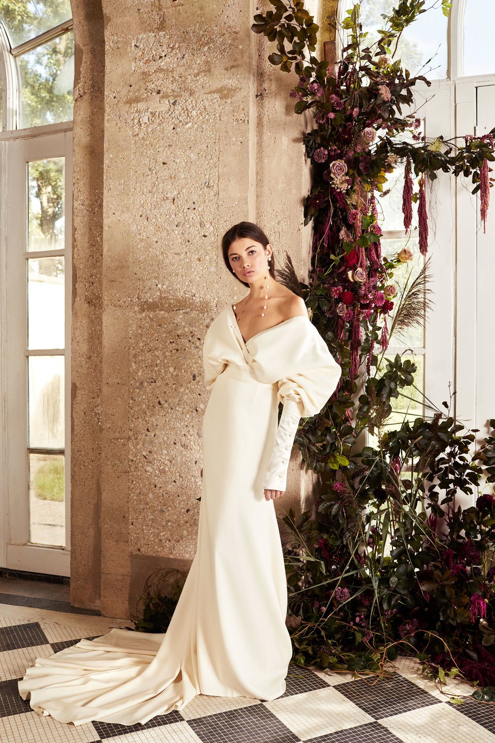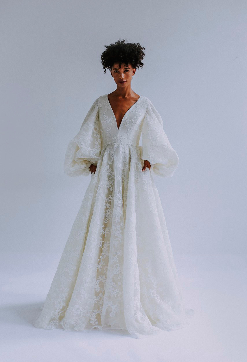 Chique, as mangas bufantes desabadas de Leanne Marshall são must-have para a noiva que sabe sobre informação de moda.