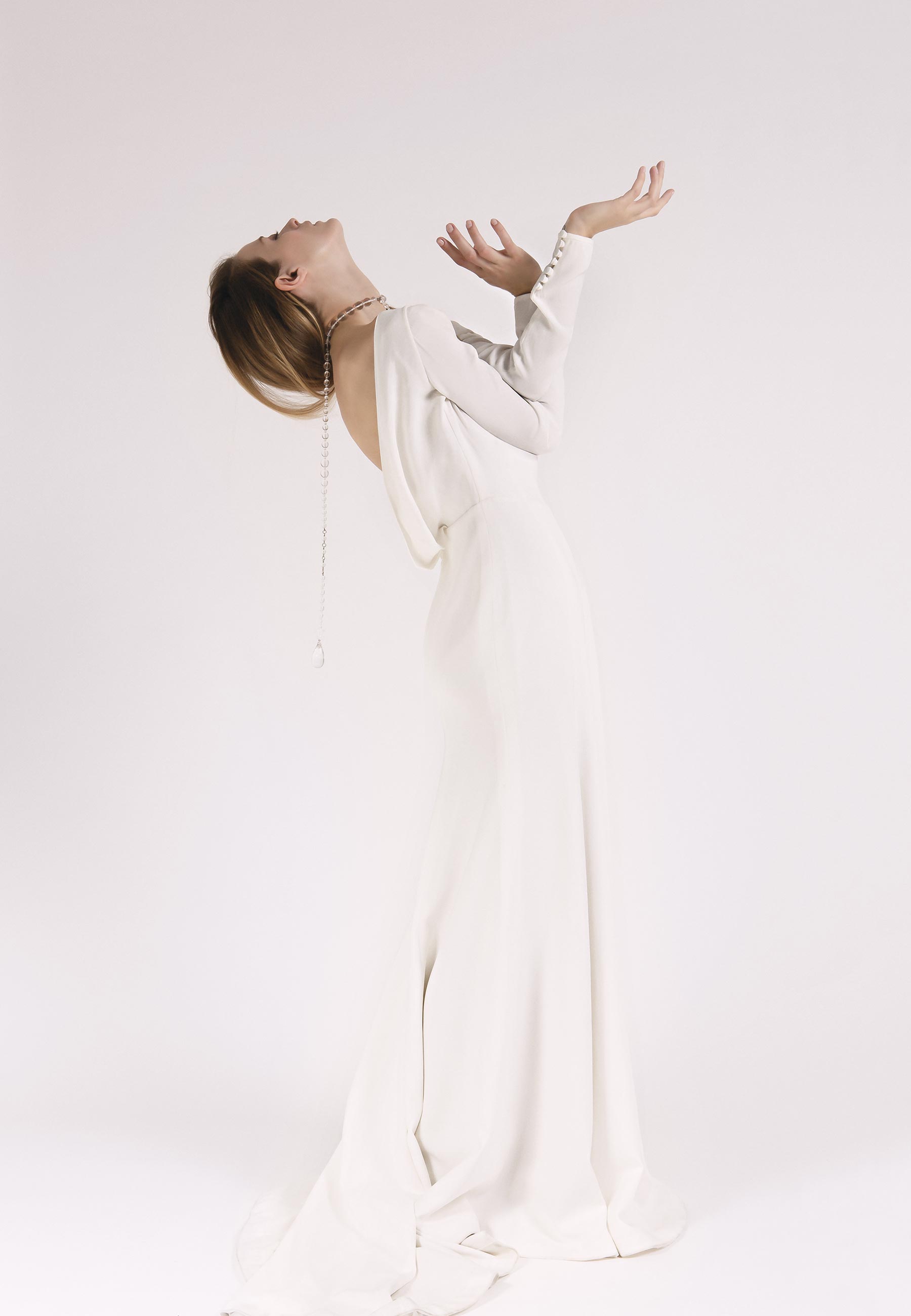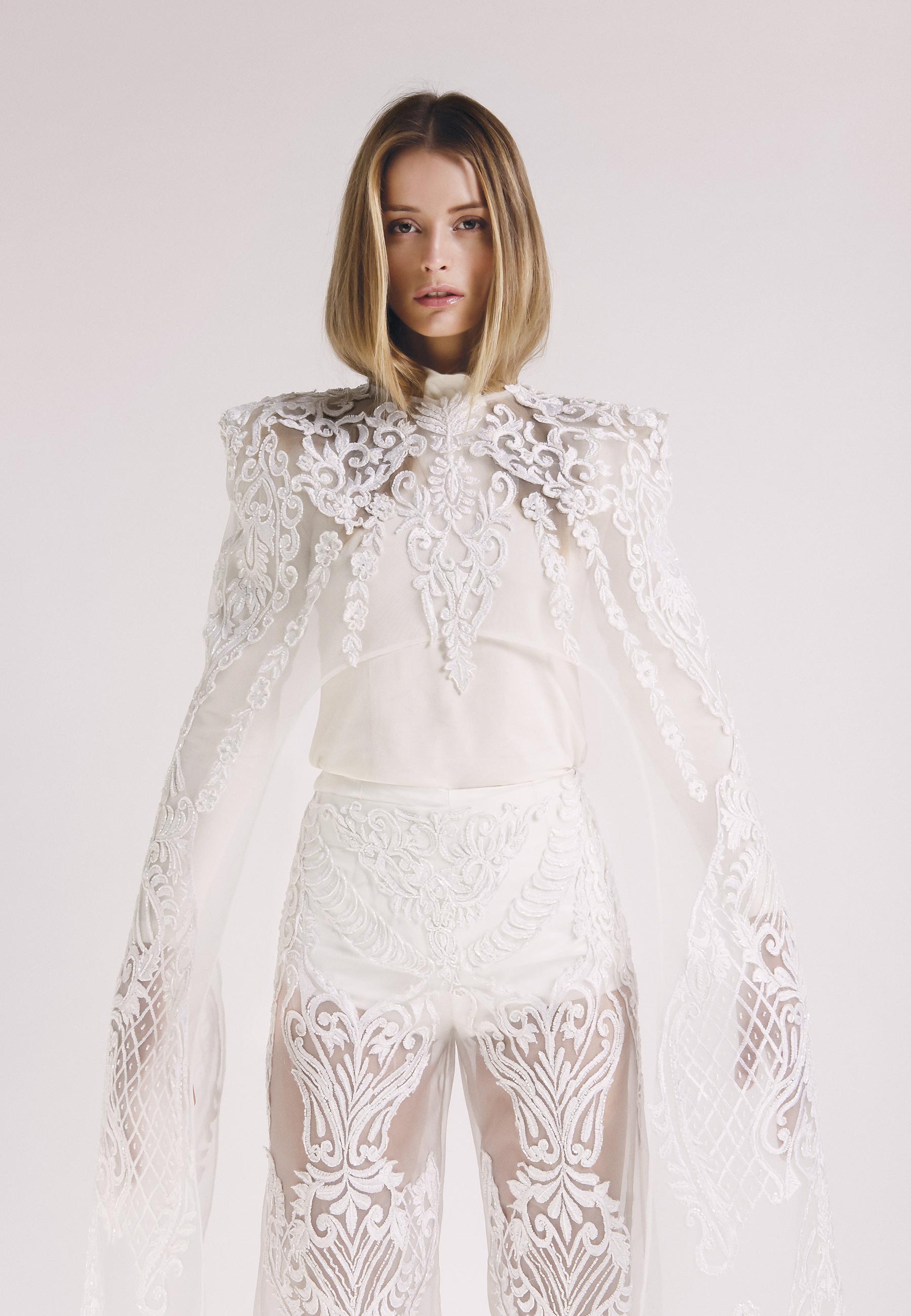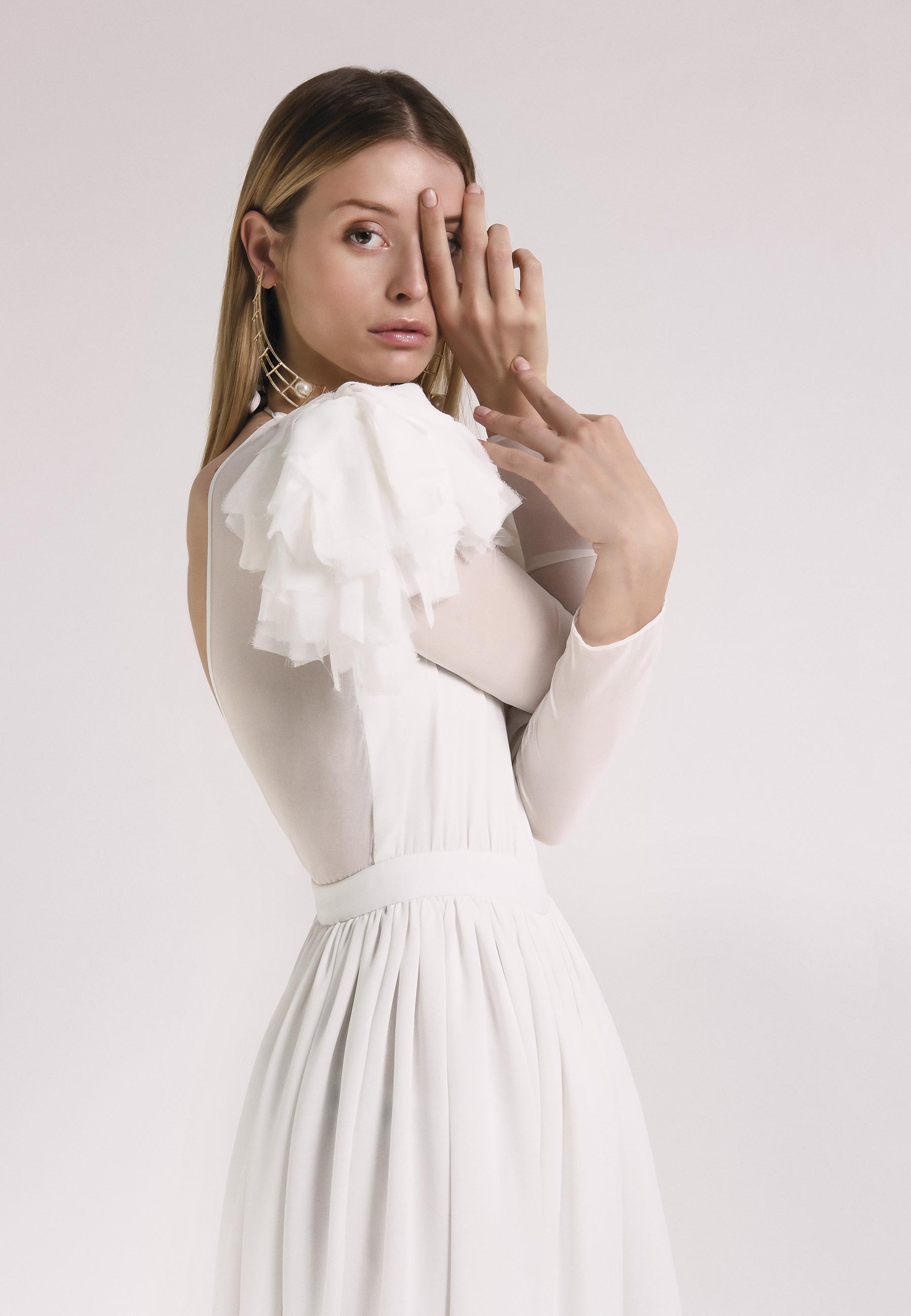 A sutileza minimalista somada às modelagens e aos detalhes atemporais modernizam os volumes dos looks de noiva sem perder a elegância.