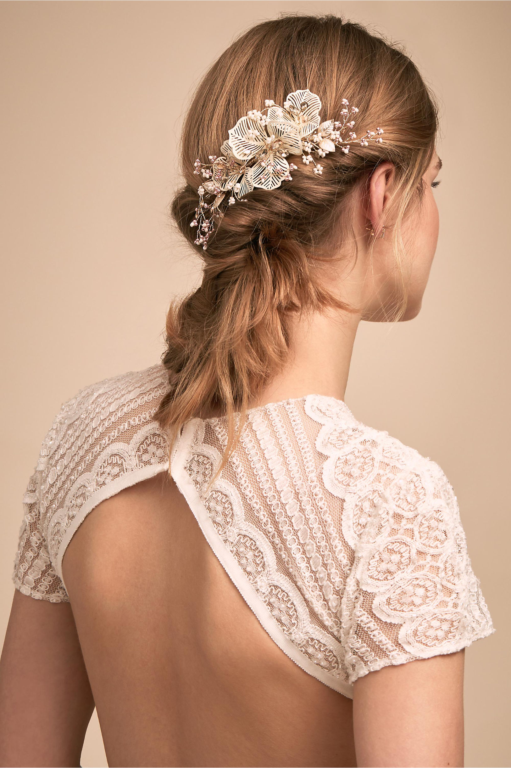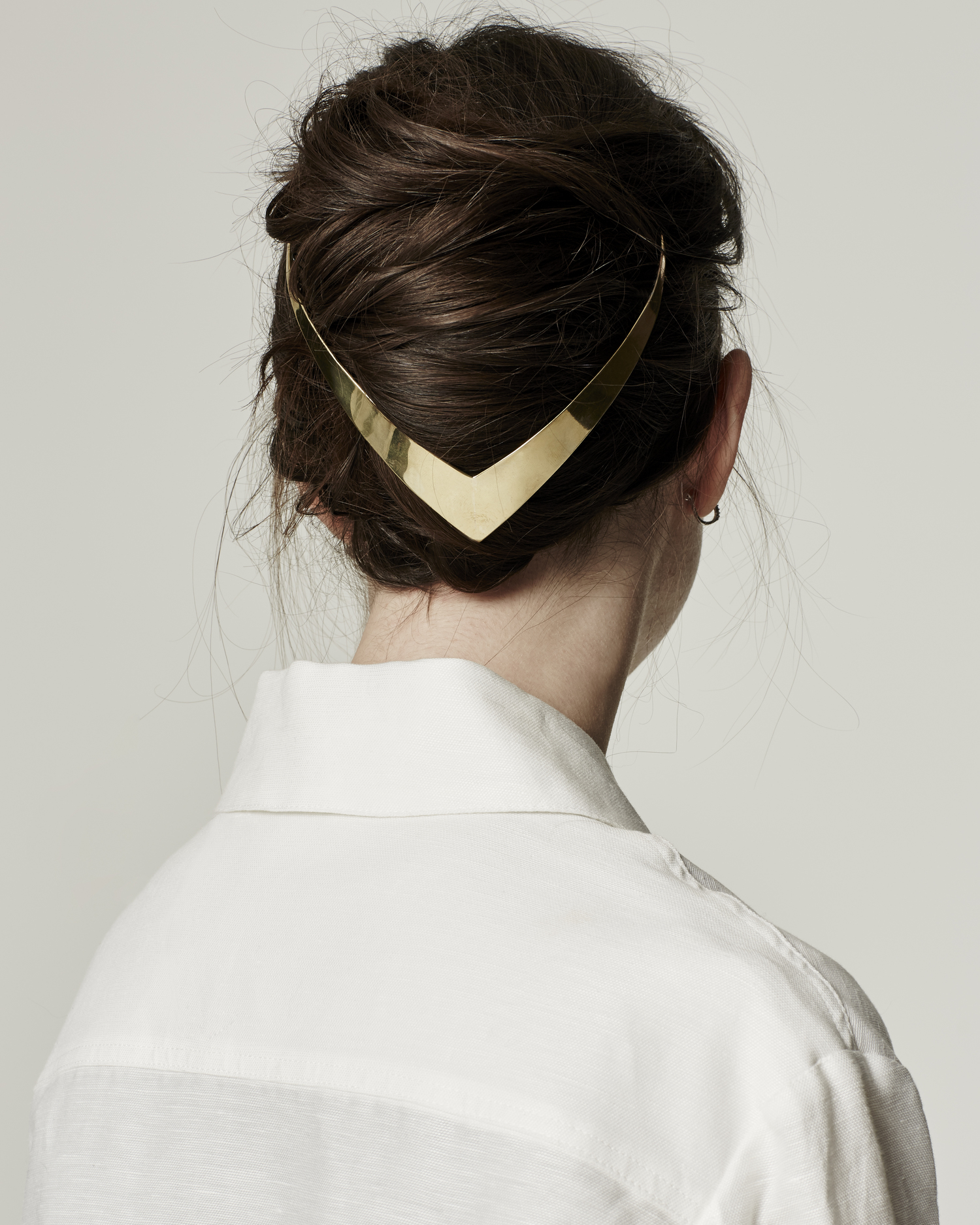A peça triangular da Lelet New York foi feita para arrematar o coque da noiva. A dica é apostar no coque bagunçado, que enriquece ainda mais a peça.