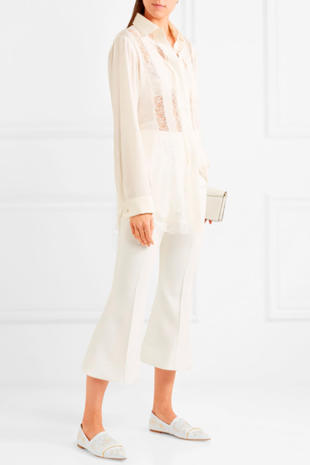 O modelo de Sophia Webster não tem tiras, mas como é fechado na parte de trás, ele garante que o modelo fique certinho nos pés. Rendado, ele é clássico para as noivas que vão subir ao altar.