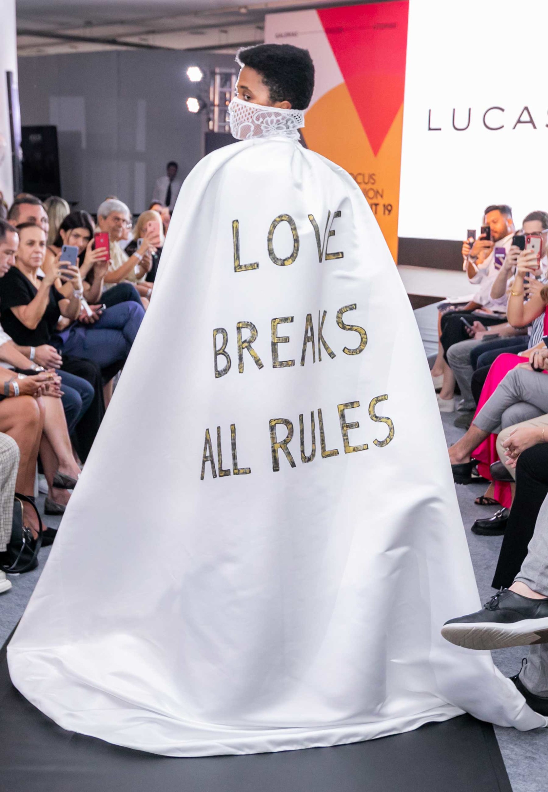 Inspirado em formas da natureza, o estilista Lucas Anderi apresentou esta semana, em São Paulo, nova coleção de noivas. Batizada de “União Natural”, a sequência de looks foi do visual tradicional a peças irreverentes, como a sugestão de trocar o vestido pelo macaquinho de renda. A dica era quebrar regras, como Anderi grafou em uma imensa capa a frase “Love breaks all rules” – pintada a mão por Alice Graziano.