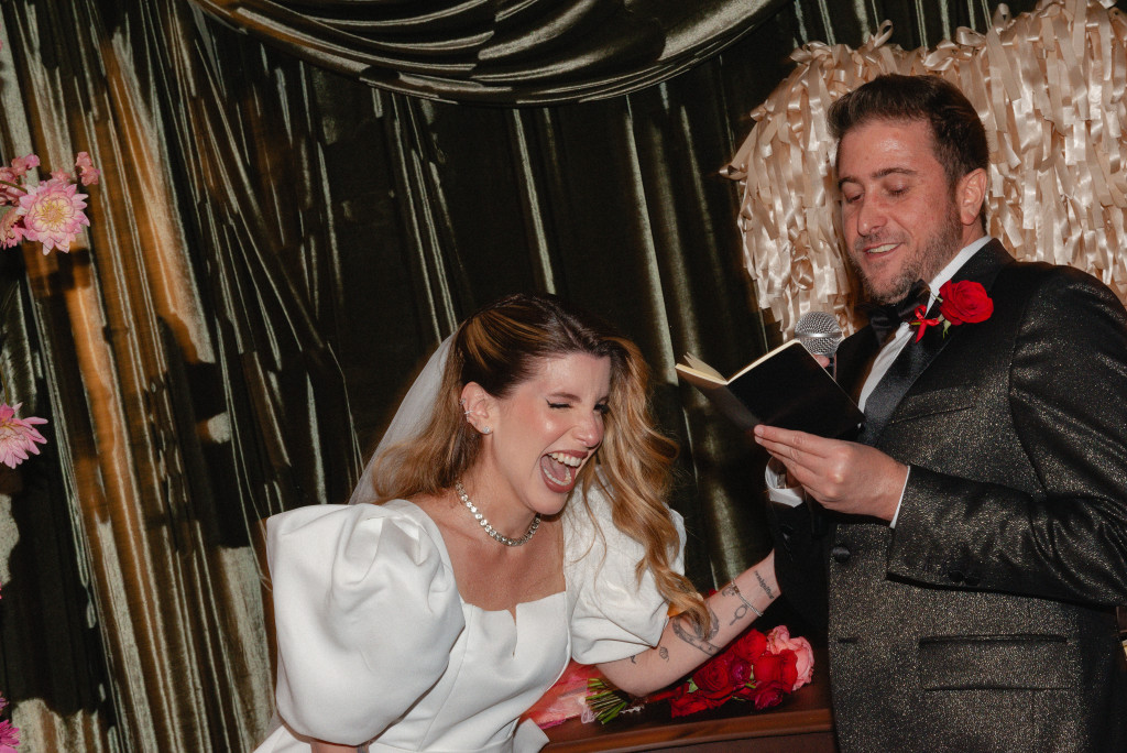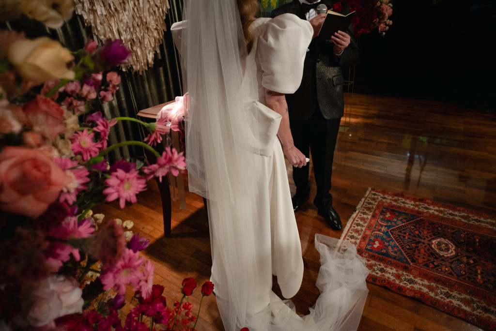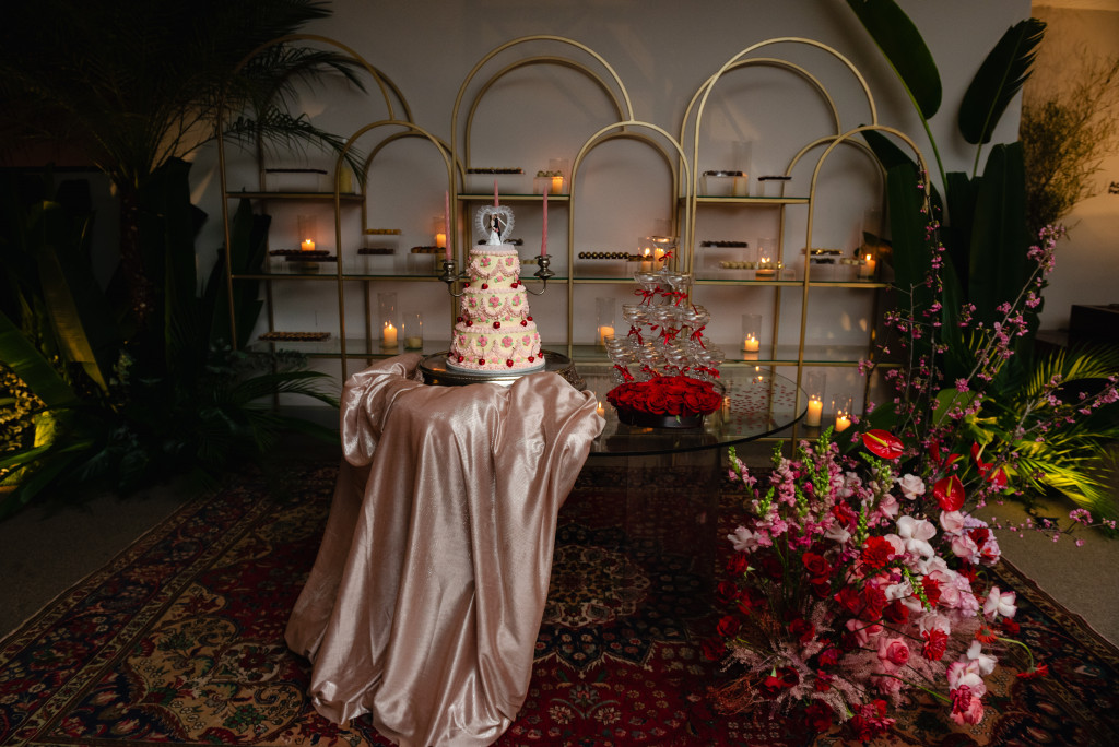No início foi um pouco complicado, porque eu não sou de São Paulo e não tinha referência de profissionais. Mas mergulhei de cabeça no assunto até encontrar fornecedores que tivessem a minha vibe, uma energia parecida e que não julgassem minhas decisões nada ortodoxas. Depois que encontrei a assessora perfeita (Carola), tudo fluiu perfeitamente. Desde o começo, a ideia era um casamento “anti-bride”, mas o conceito da estética camp surgiu depois de muitas reuniões com a equipe de decoração e identidade visual. Eles abraçaram minhas ideias, e eu me senti verdadeiramente respeitada.