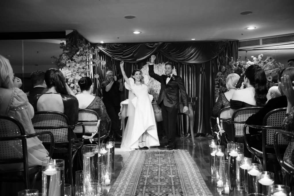 Um exemplo disso é o casamento da Ursula e do André. O pedido nada convencional, durante um evento do UFC, já era um prenúncio de que, nessa celebração, não faltaria personalidade. Com a ajuda de fornecedores como a Carola Assessoria, Gallery na decoração e Nós Wedding na identidade visual, a dupla disse “sim” em um evento com estética camp – e muito amor.
