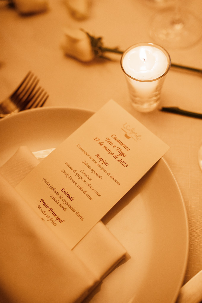 Ficamos noivos em 2022, mas decidimos adiar o casamento para este ano, devido aos eventos de final de ano. Em março, decidimos ir ao cartório e, na mesma semana, celebrar com nossos amigos mais próximos e familiares. Faltando apenas cinco dias para a data, reservamos o restaurante Le Casserole, onde costumamos ir para comemorar meu aniversário.