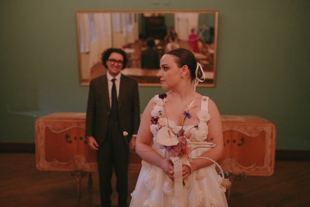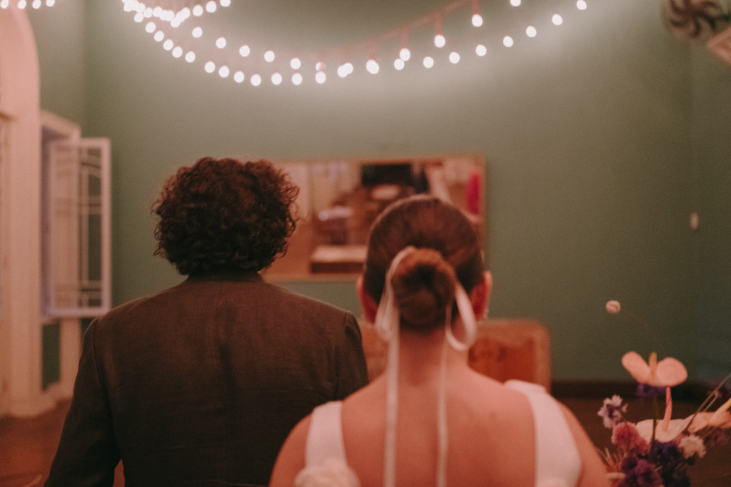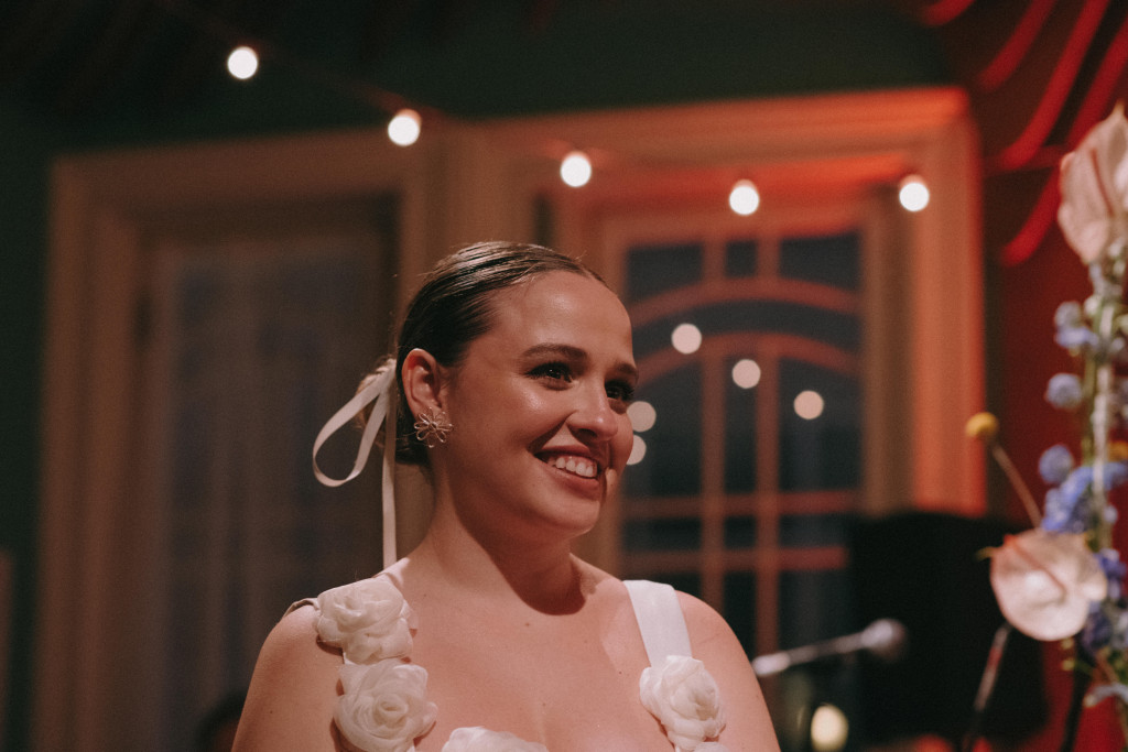 A noiva se arrumou em casa, ao lado da mãe e da avó. A primeira pessoa que encontrou ao chegar ao local foi o próprio noivo. A cerimônia foi realizada pela irmã dele, aliás, e não houve padrinhos. O que não faltou foi o evidente amor do casal, a felicidade dos amigos por presenciarem o momento e muita – muita – festa. Abaixo, eles contam sobre o processo de organização: