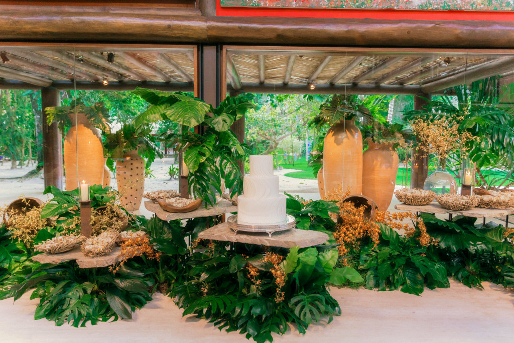 Durante a festa de 12 horas, Natasha Digs, uma DJ internacional que tem residência em Ibiza, manteve a energia alta e a banda baiana trouxe alegria ao local. Nossa festa refletiu quem somos como casal, nosso gosto por viagens e diferentes culturas, e nossa busca por uma proposta moderna e contemporânea.