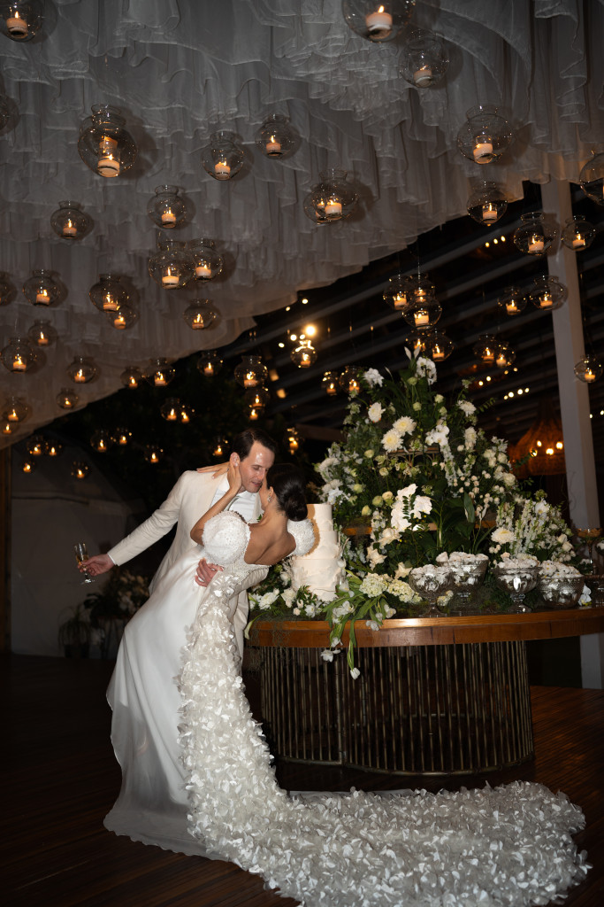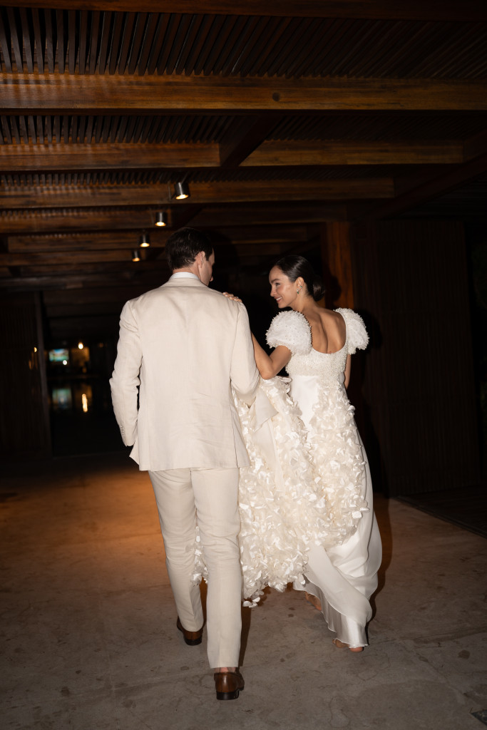 Para o vestido de noiva, Luma se inspirou em uma peça branca usada por Audrey Hepburn no longa “War and Peace”. A peça foi produzida na Itália, pelo Atelier Emé, assim como os vestidos das madrinhas. ‘’Eu sempre tive uma grande obsessão com a Audrey, ela me inspirou em vários momentos da minha vida. Quando eu assisti esse filme, eu sabia que aquele vestido seria o desenho exato do meu quando eu fosse me casar’’, conta Luma.