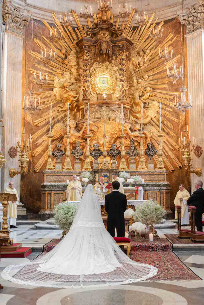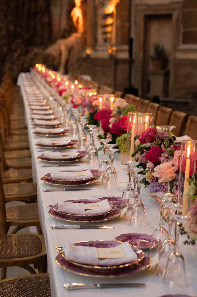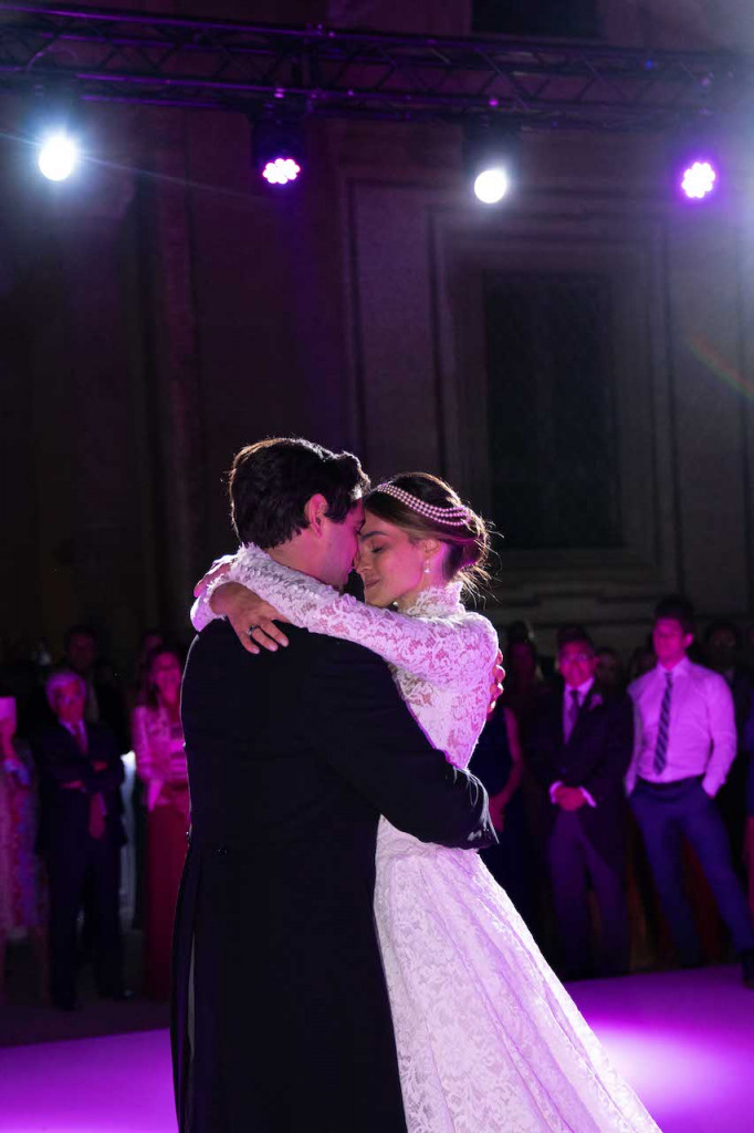 Desde então, Sabine se dedicou intensamente aos preparativos do grande dia. “Fui uma noiva muito decidida, porque sempre tive o sonho de casar. Me preocupei com cada detalhe, porque não queríamos um casamento brasileiro na Itália. Fizemos um casamento verdadeiramente italiano”, explica ela. Na prática, isso se traduziu em uma cerimônia religiosa tradicional e uma celebração com atenção ao protocolo, serviço de jantar empratado e organizado por fornecedores locais.