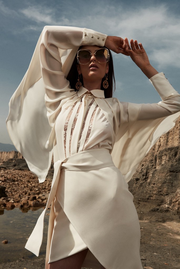 Outra característica queridinha de Elie Saab são as capas, que mudam completamente qualquer modelo. O vestido fluído apresentado pela label ganhou mais glamour ao ser combinada com a peça.