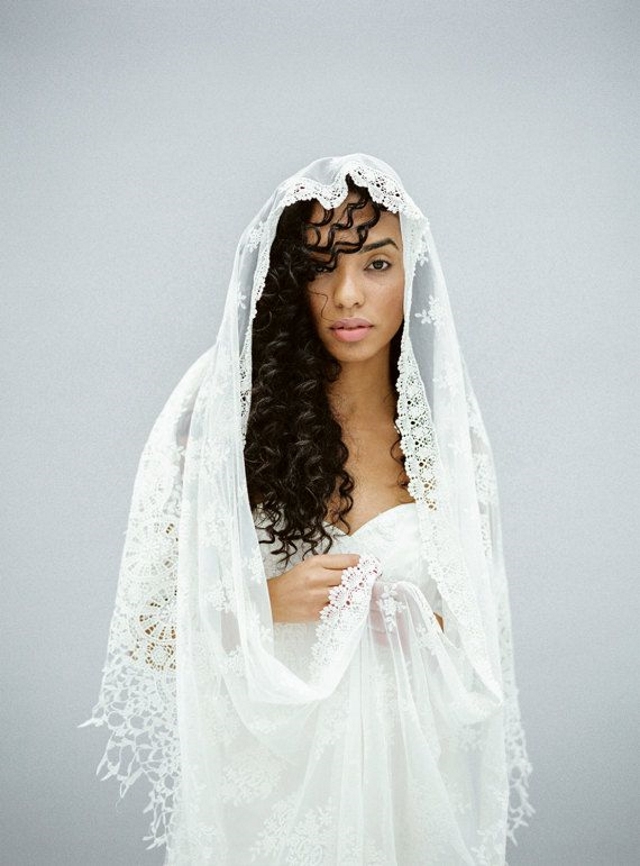 A mantilha é o tipo de véu mais tradicional. Com aplicações de renda e bordado a mão, ele é bastante formal. Neste modelo do estilista Zuhair Murad, sem bicos de renda, a borda da peça fica cortada apenas no tule e a noiva consegue ganhar um ar mais moderno.