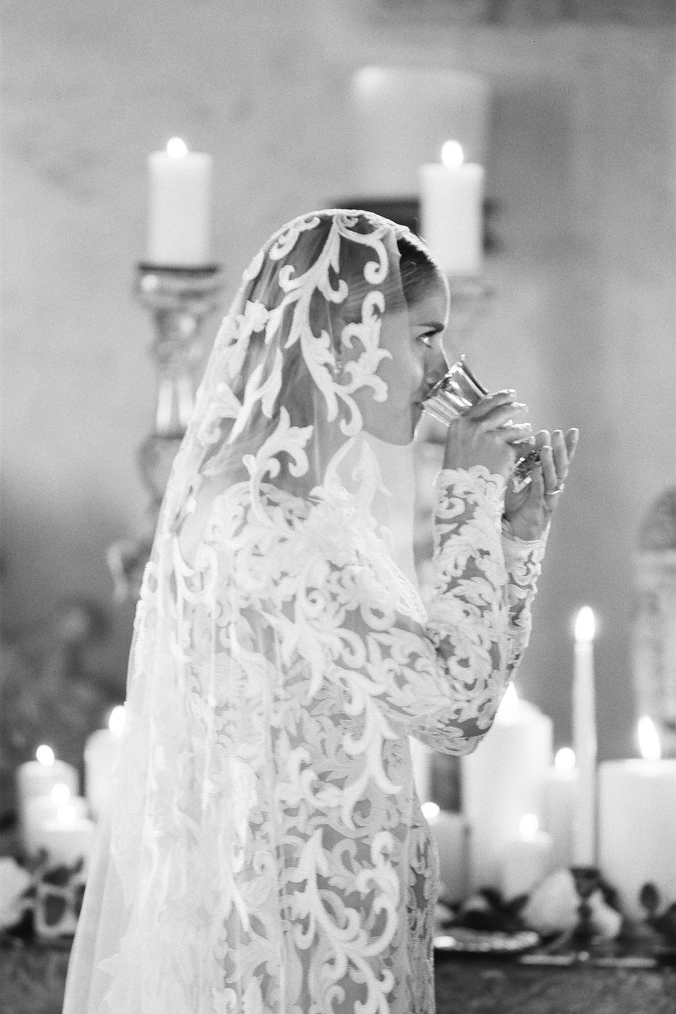 O véu longo e com o tule tingido (neste exemplo em tom de blush) traz aquela dose de drama para a cerimônia.