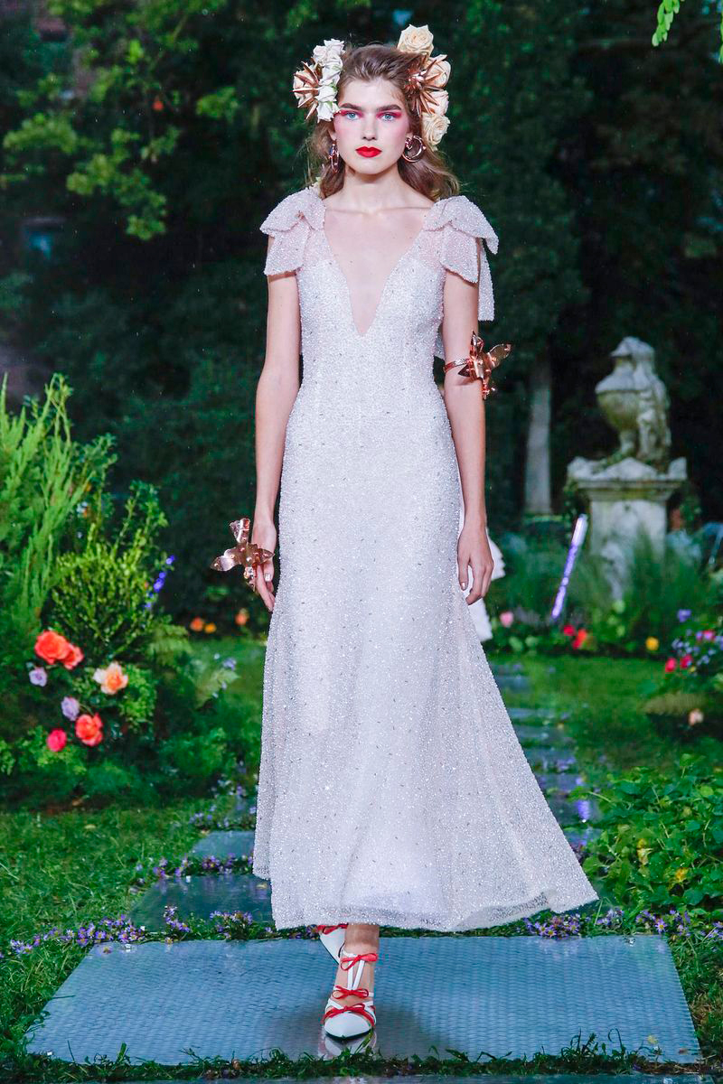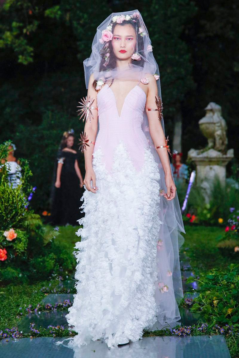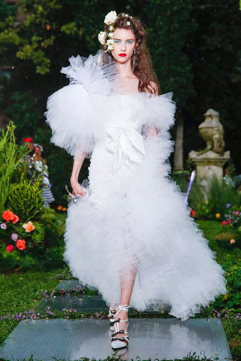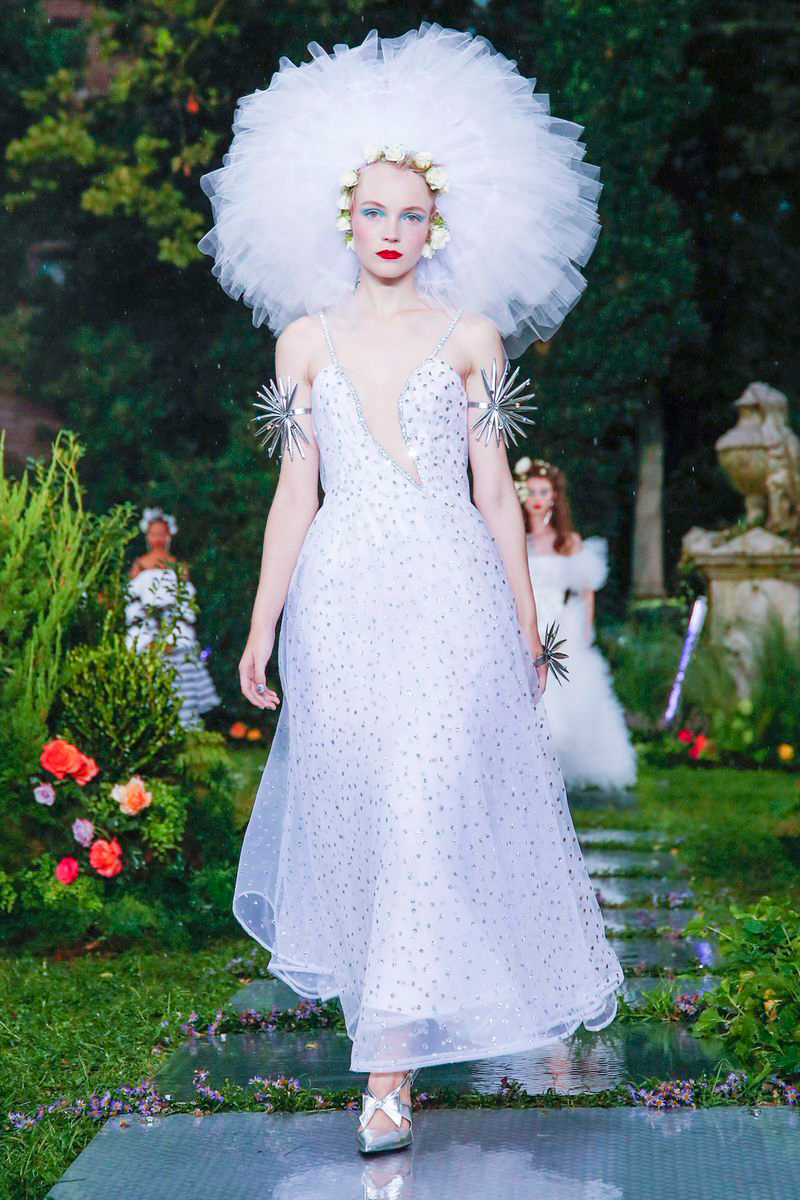 Na passarela da grife apareceram excelentes ideias para as noivas que vão subir ao altar, especialmente para aquelas que não abrem mão de um vestido volumoso com tules e apliques em 3D.