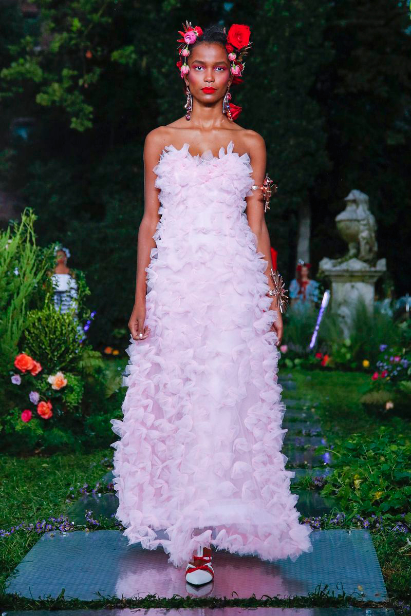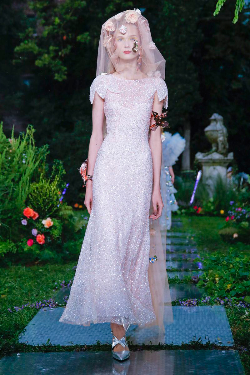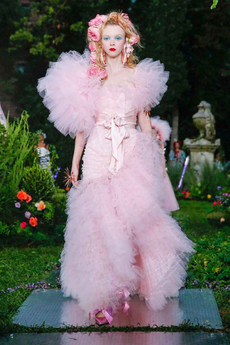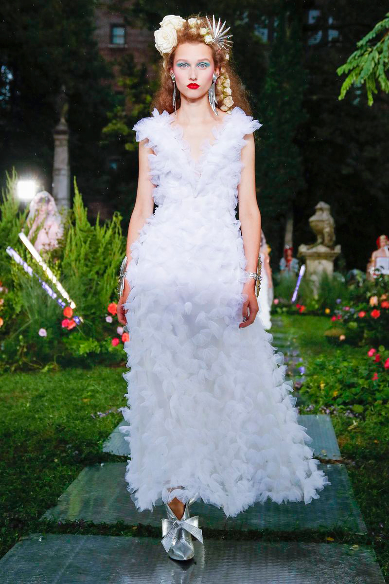 Na passarela da grife apareceram excelentes ideias para as noivas que vão subir ao altar, especialmente para aquelas que não abrem mão de um vestido volumoso com tules e apliques em 3D.