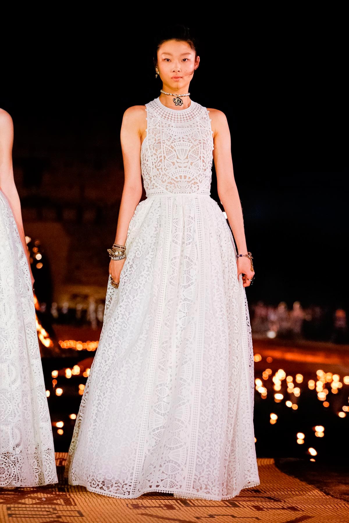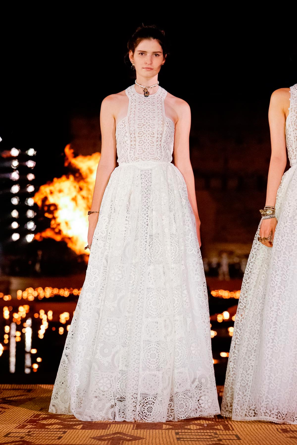 Ao final do desfile, a estilista da maison, Maria Grazia Chiuri, mostrou seis vestidos brancos que são prefeitos para as noivas que vão casar na praia ou no campo na estação do calor.