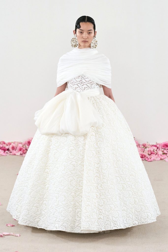 De volta aos trilhos plácidos da nave, embora o tapete vermelho prefira o nupcial “daydreaming”, com bordados feitos à mão e saias configuradas em muitas camadas, há espaço para as tendências da estação, a exemplo do estilo cartesiano do alemão William Fan e do minimalismo envolto por drapeados e paletós clássicos da Dior. A maison francesa também exibiu em sua coleção mais recente silhuetas alongadas, nuances de bege, capa, camisaria franzida abaixo do busto e decote transpassado. Outra casa parisiense – a Chanel – revisitou a década de 1920, valendo-se do comprimento mídi e da cintura solta. Do lado oposto do básico – mas de mãos dadas aos tresloucados anos do Charleston – Valentino adotou joalheria potente, rendados dos pés à cabeça, contornos orgânicos, caimentos com franjas sobrepostas em versão melindrosa e sapatos coloridos com laços hiperbólicos. O estilista ainda fez referência à Grécia antiga, onde se inspirou nas vestes das deusas, com fendas arrebatadoras.